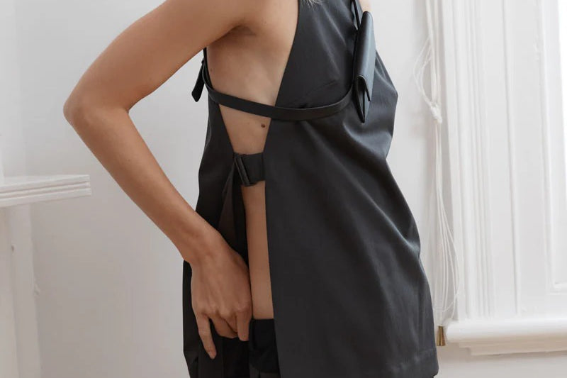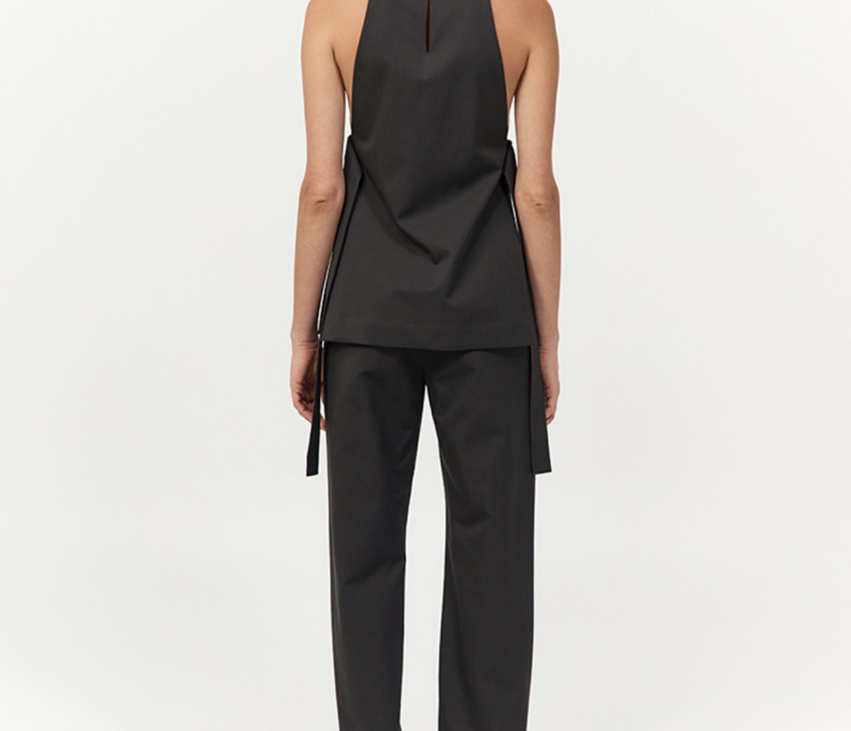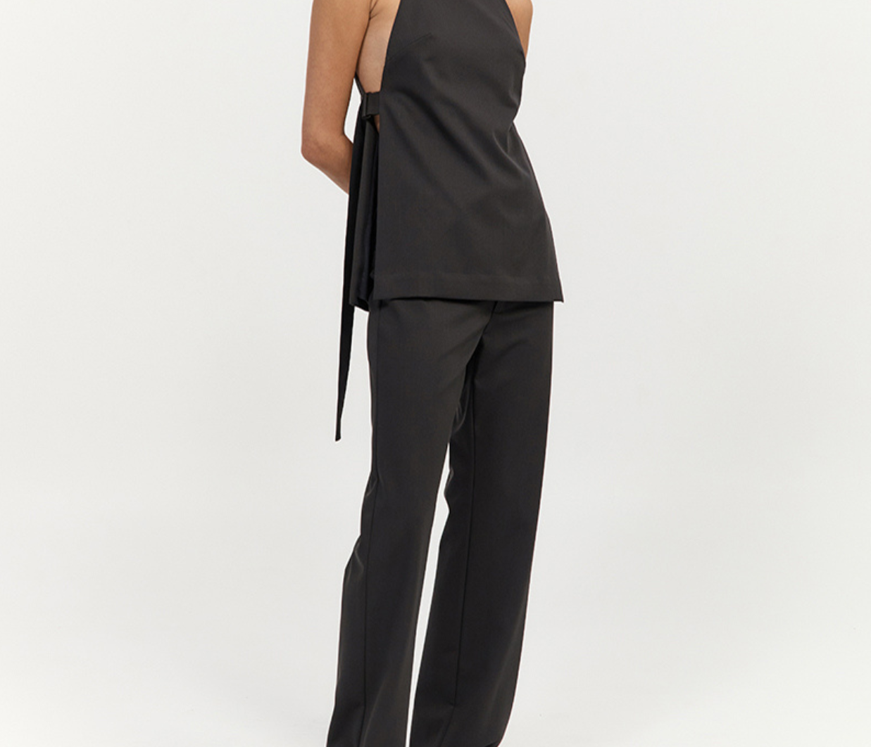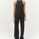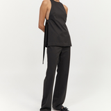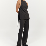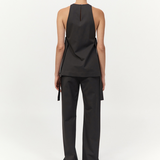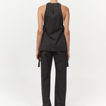 Introducing St Agni's Side Tie Top in Black Olive, a slim cut silhouette crafted from responsibly sourced wool. Featuring a crew neckline, bust darts, and open side seams, the Side Tie Top is finished with adjustable D-ring ties for a custom fit. A contemporary layering piece that adds edge to refined tailoring.