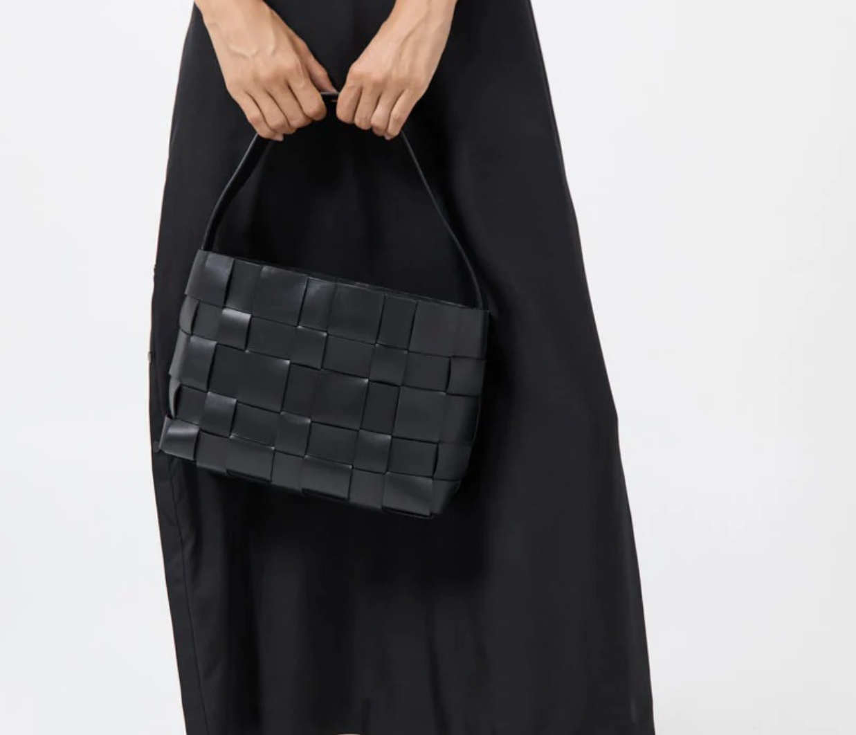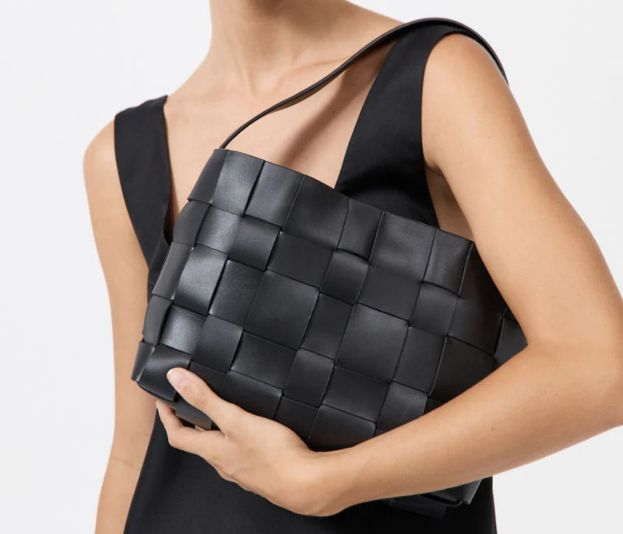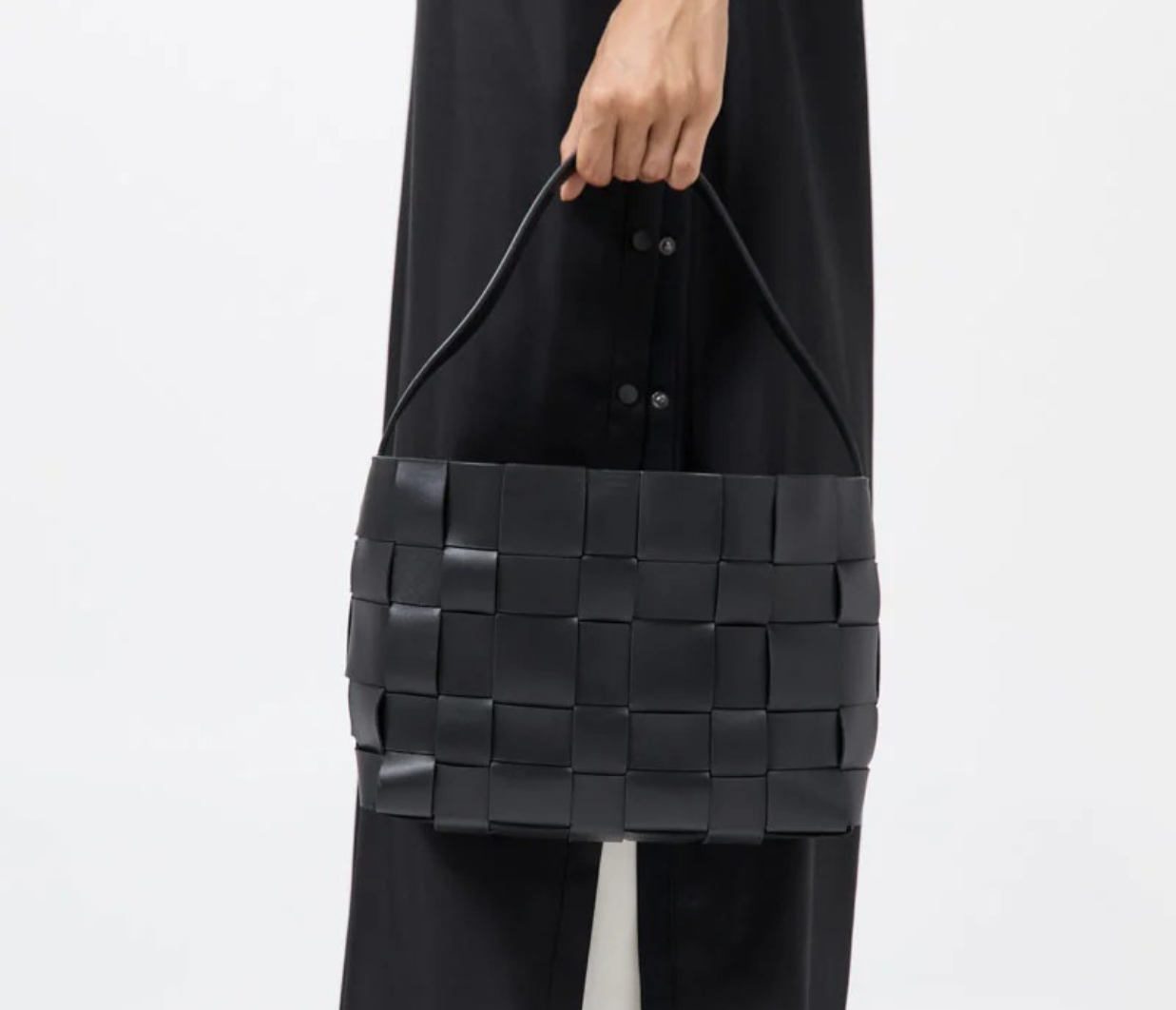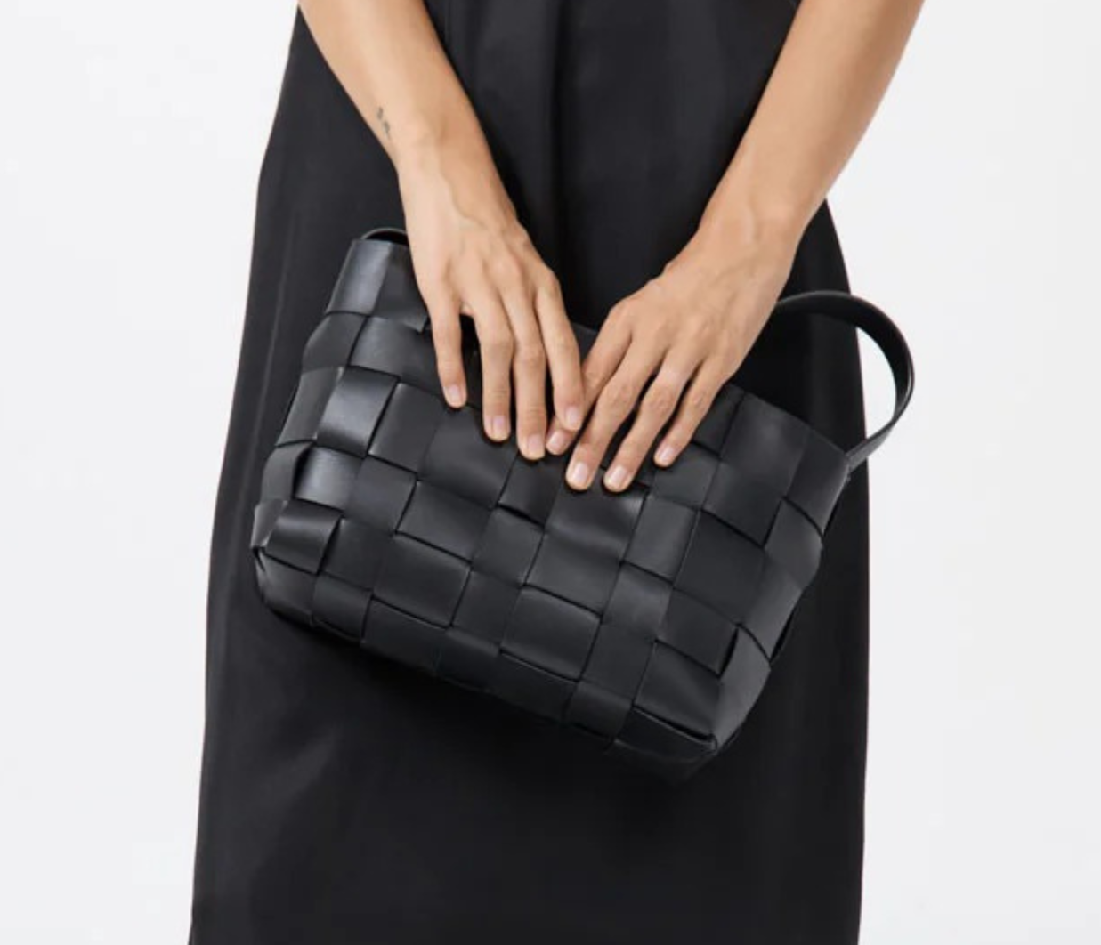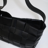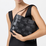 Introducing St Agni's Woven Mini Tote in Black, a woven bag in the color solid black. The Woven Mini Tote features a thick woven body and single shoulder strap. Designed to carry your daily essentials, the Woven Mini Tote is the perfect accompaniment to casual and occasion wear alike.
