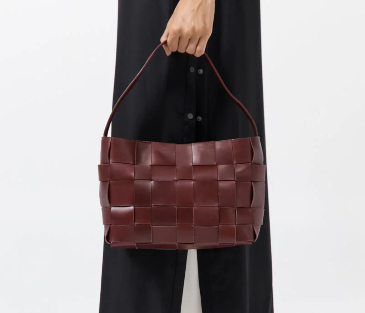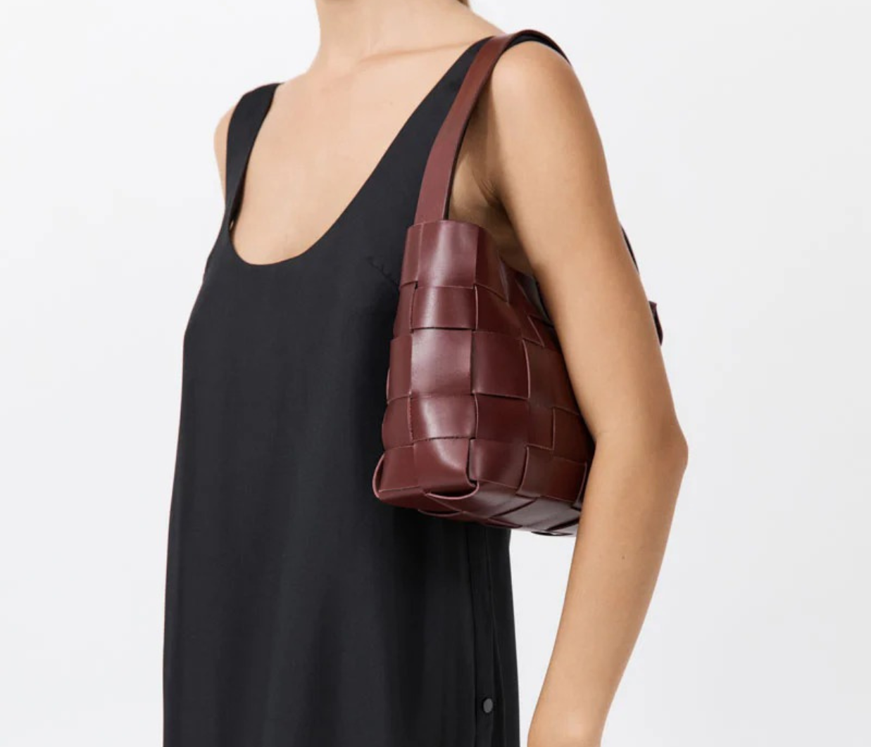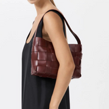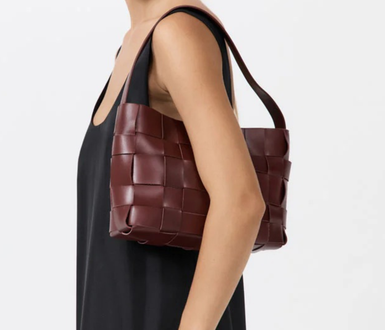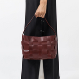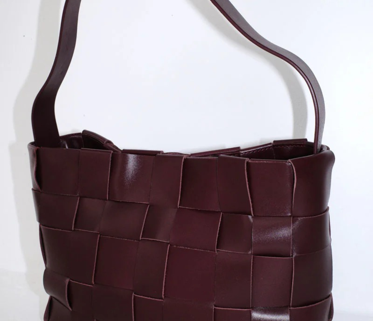 Introducing St Agni's Woven Mini Tote in Plum, a woven bag in the color solid black. The Woven Mini Tote features a thick woven body and single shoulder strap. Designed to carry your daily essentials, the Woven Mini Tote is the perfect accompaniment to casual and occasion wear alike.