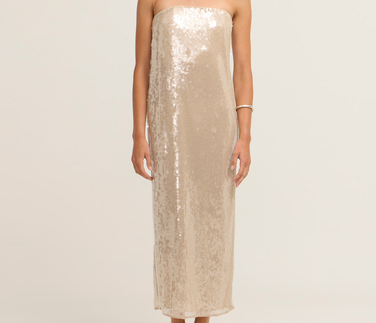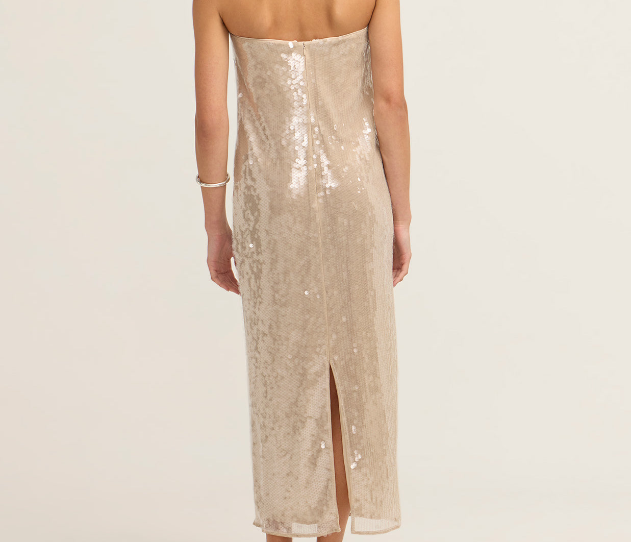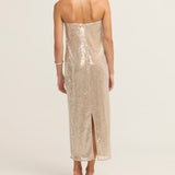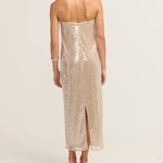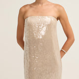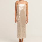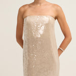Introducing the Casey Dress in Moon, a best-seller, crafted from shimmering sequins that add a touch of glamour to any occasion. With a relaxed silhouette that flows gracefully through the body, this dress offers both comfort and style. A subtle back slit enhances movement, while the hidden zipper ensures a sleek, seamless fit. Perfect for a night out or any special event.
