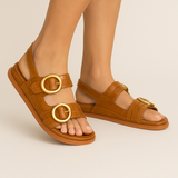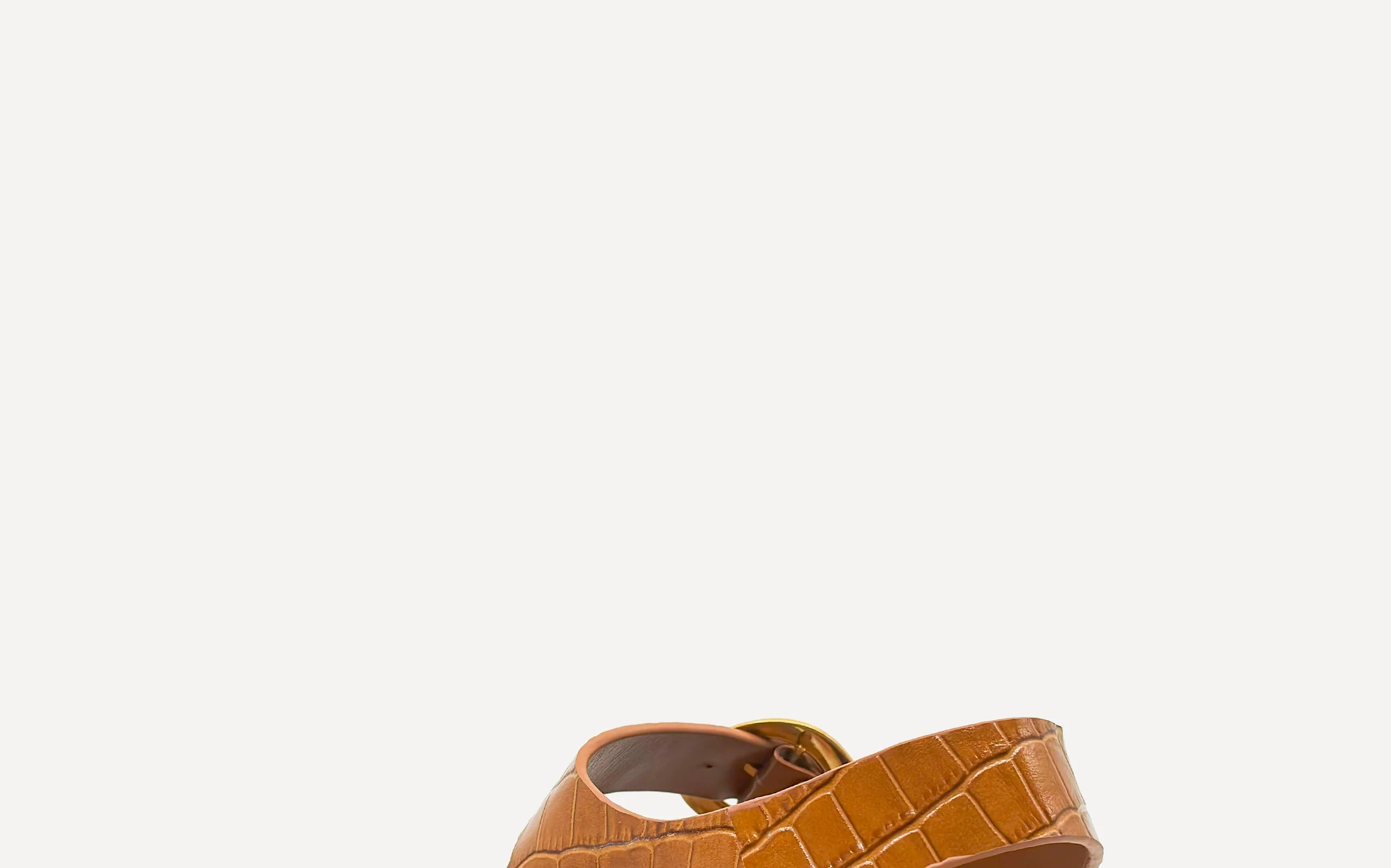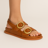 Introducing Studio Amelia's Allegra Chunky Flat Sandal in Tan Crocodile is a statement flat sandal with the chunky flatform footbed. Bonded leather straps cross over in a classic sandal design finished with two statement custom designed Studio Amelia buckles. The Allegra Chunky Flat utilises an anatomic footbed in its design with a curved edge.