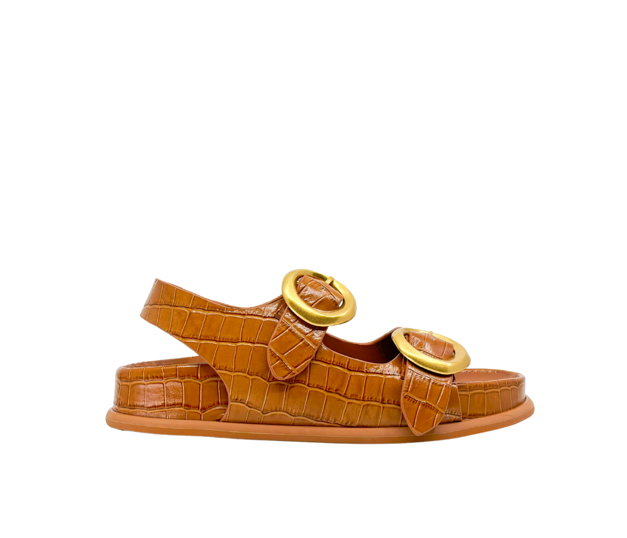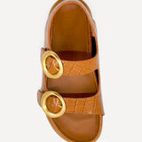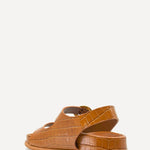 Allegra Chunky Flat Sandal in Tan Crocodile