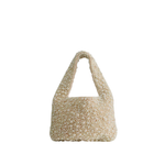 Introducing Suryo's Pearler Shoulder Bag in Muitara, a mini pearl bag in cream white. Inspired by a sea of shimmer, the Pearler shoulder bag captures the essence of a pearl fantasy where each white cream bead is hand sewn to create a symphony of texture and light. Perfect accessory to complement and elevate your event look.
