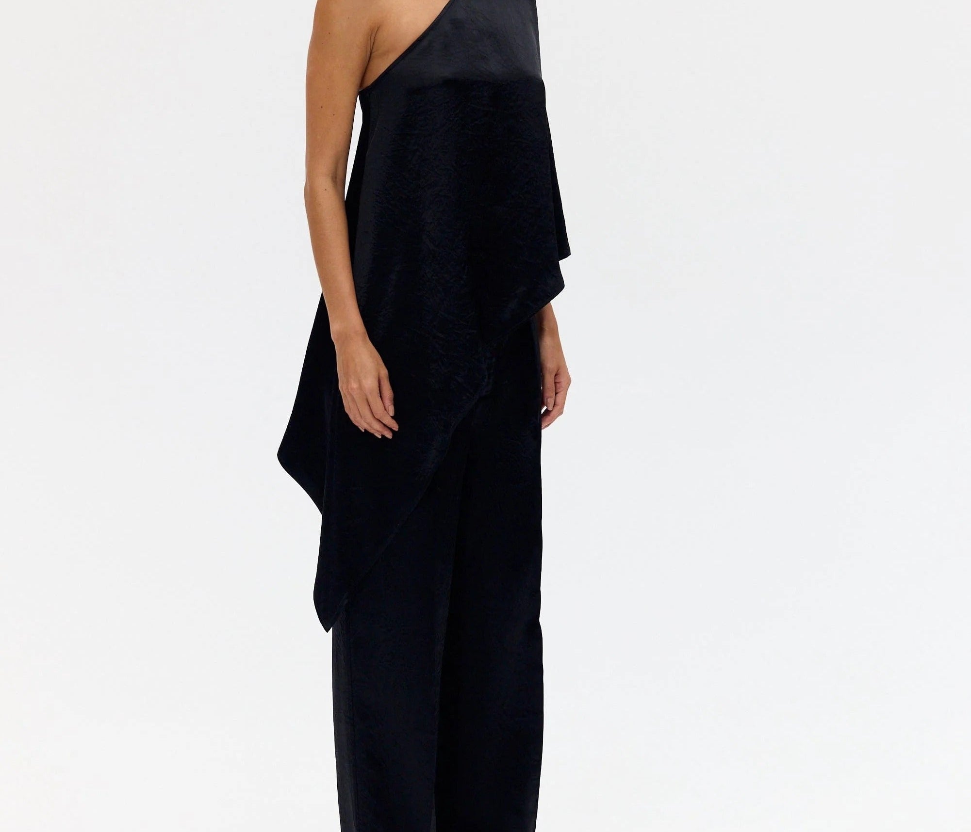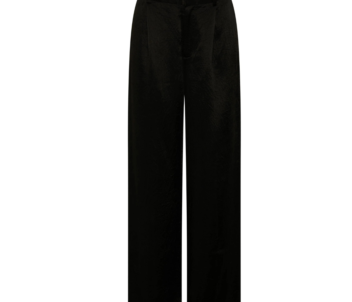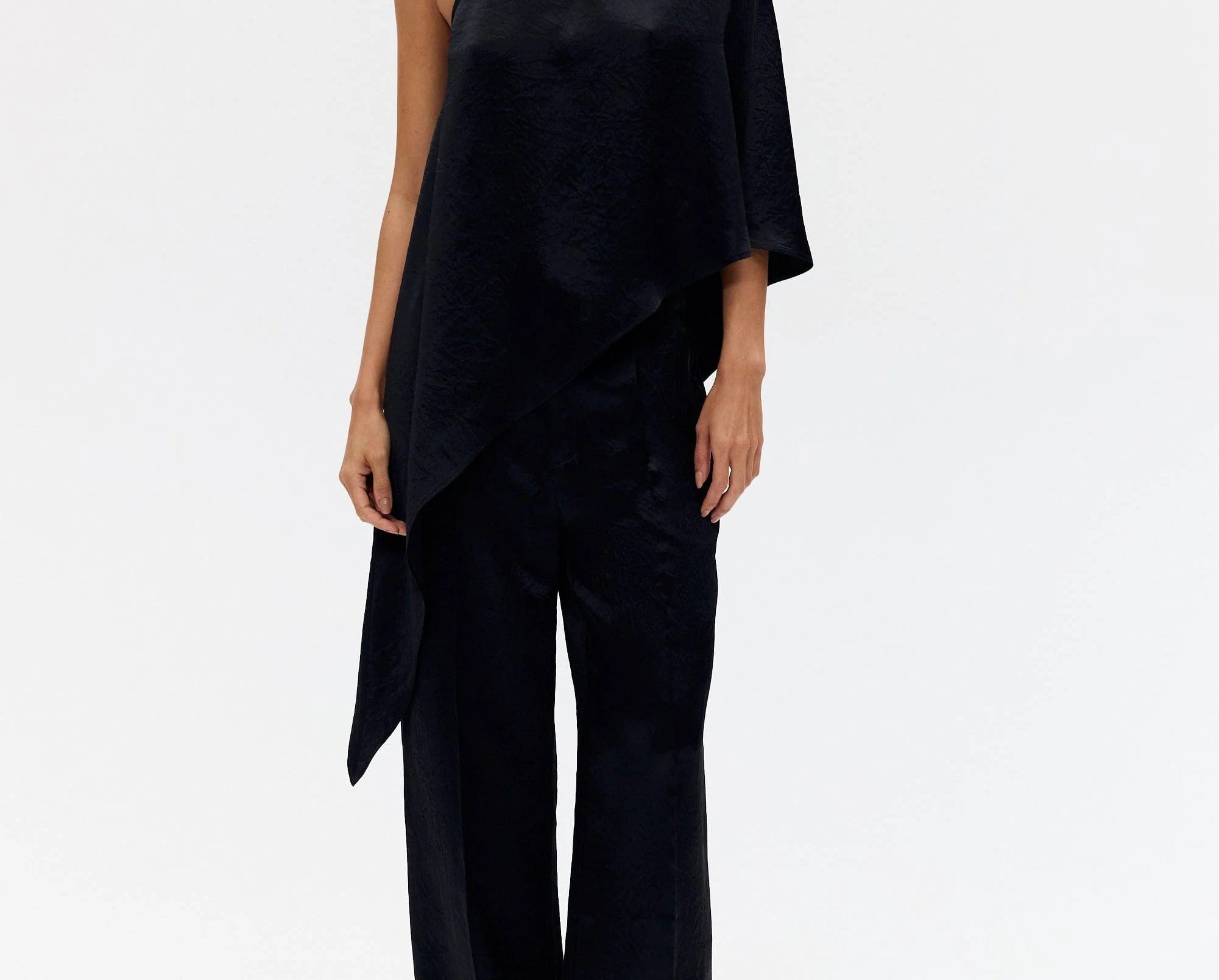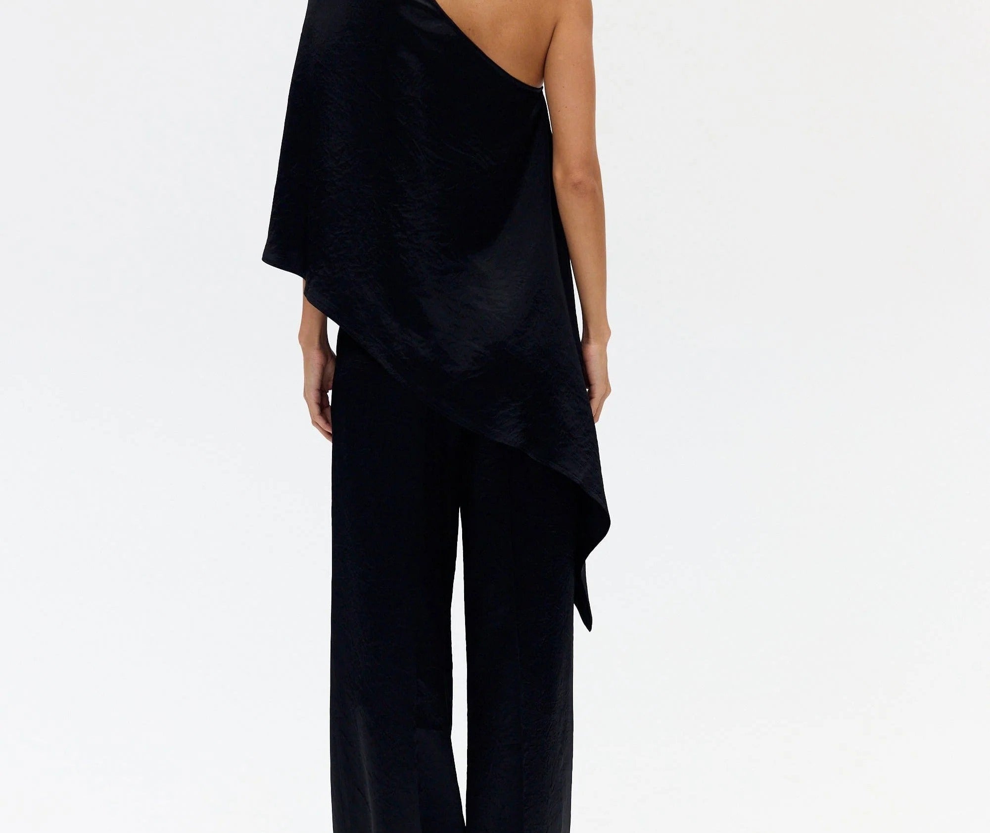 Introducing Third Form's Crush Tailored Trouser in Black, a wide-leg tailored trouser pant silhouette in black. Designed to sit mid-waist, the silhouette falls into a fluid, wide leg, featuring soft front pleats with gentle structure and finished with side pockets. Style it with the Crush One Shoulder in Black for an elevated, coordinated look.