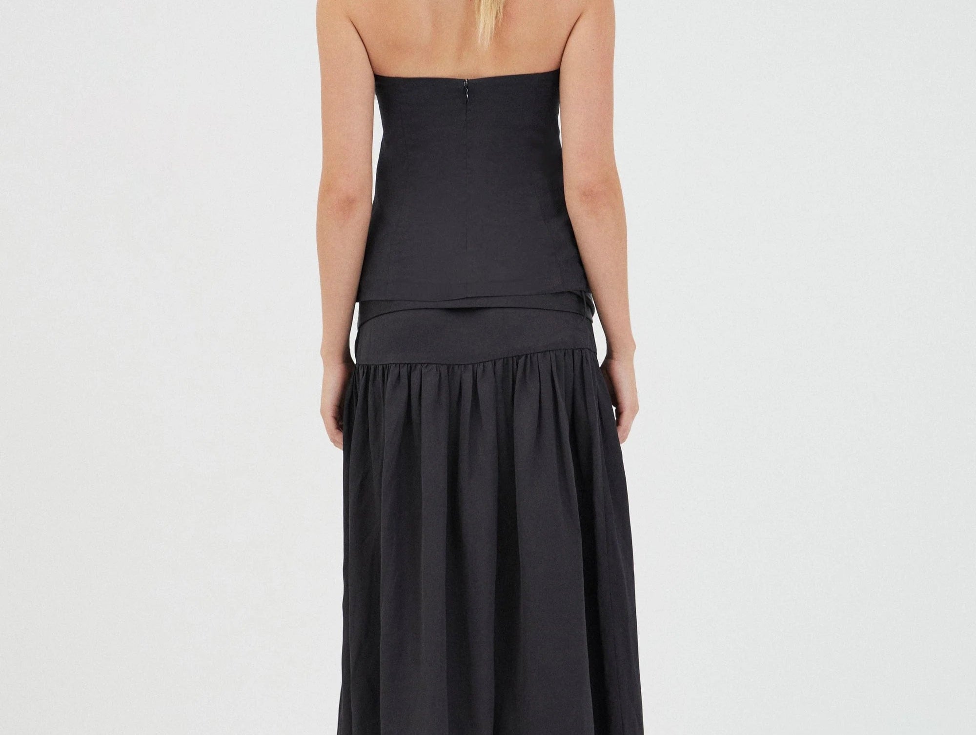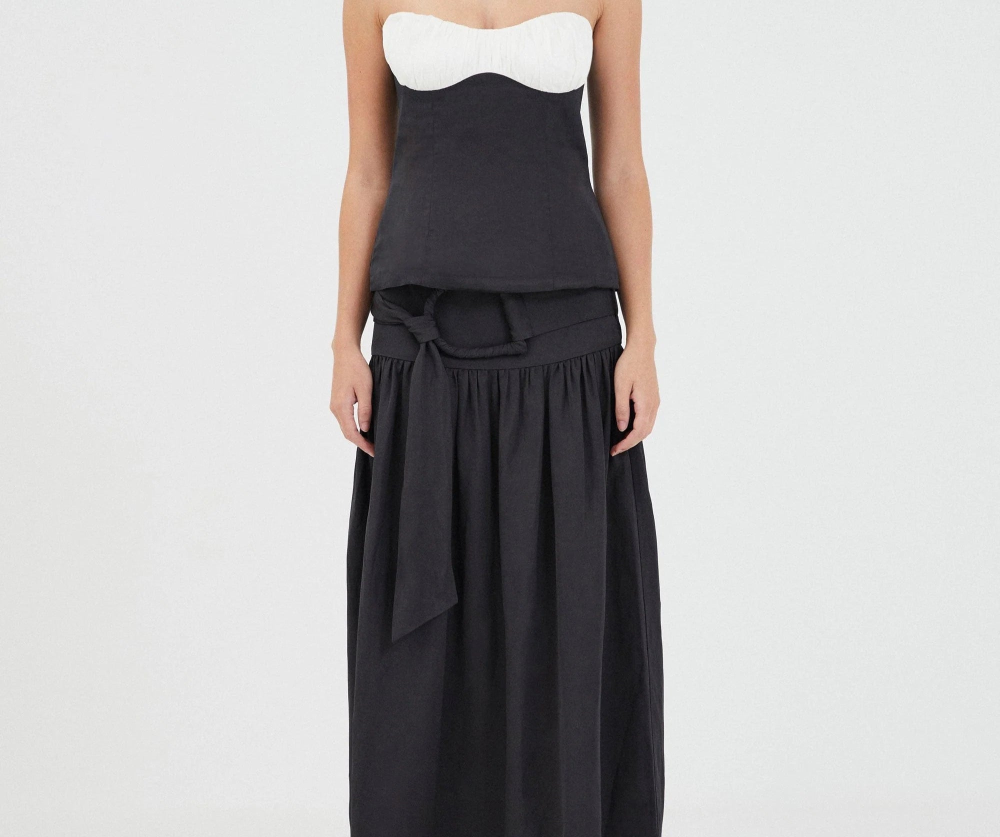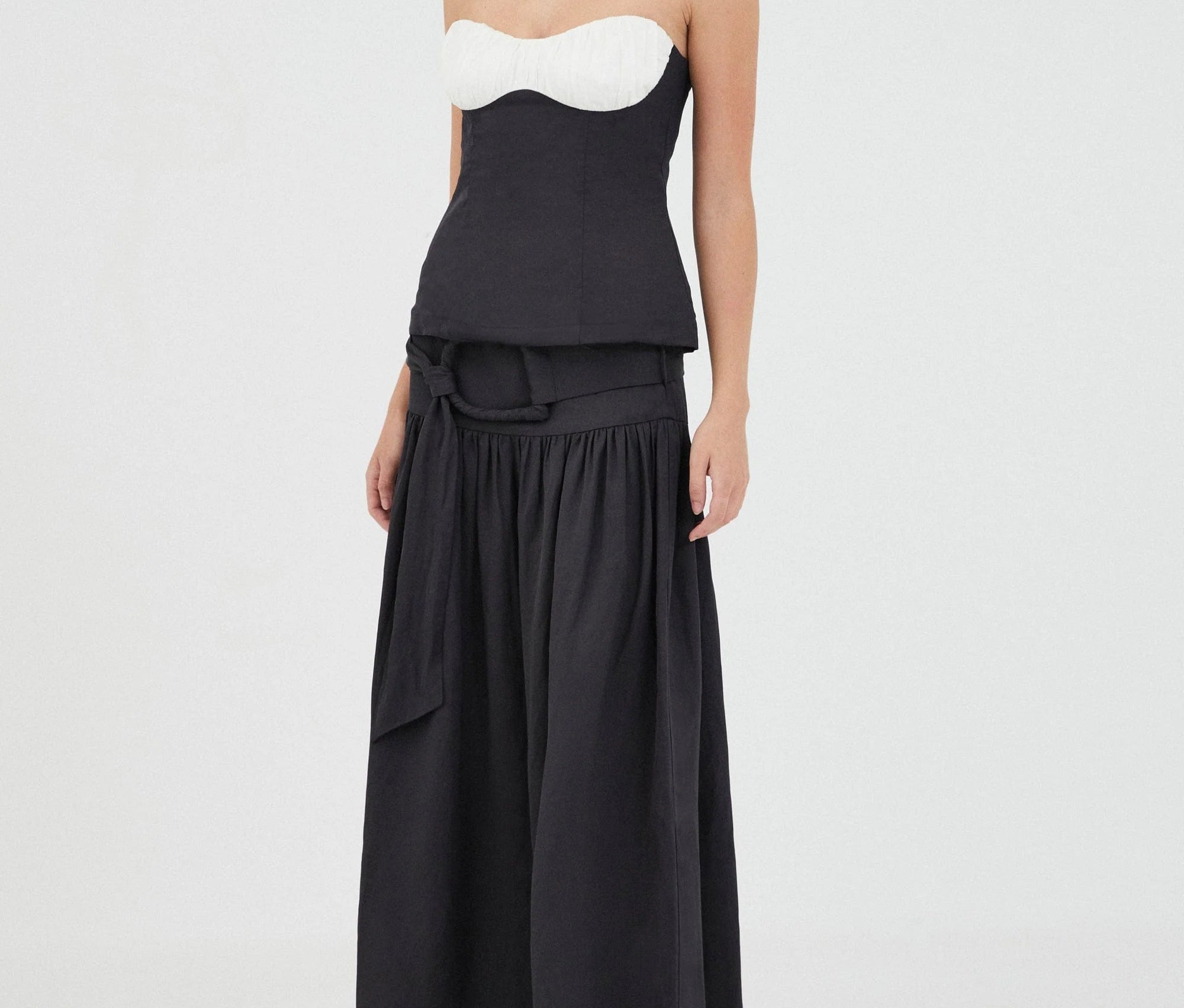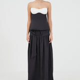 Introducing Third Form's Elysian Strapless Bodice Top in White Black, a strapless corset-style top with a structured, form-fitting silhouette. Designed with a contrasting colour block composition in white and black hues. The strapless top features a softly gathered bra detail that adds dimension through the bust and panels throughout to create a close, sculpted fit, balancing structure and fluidity.