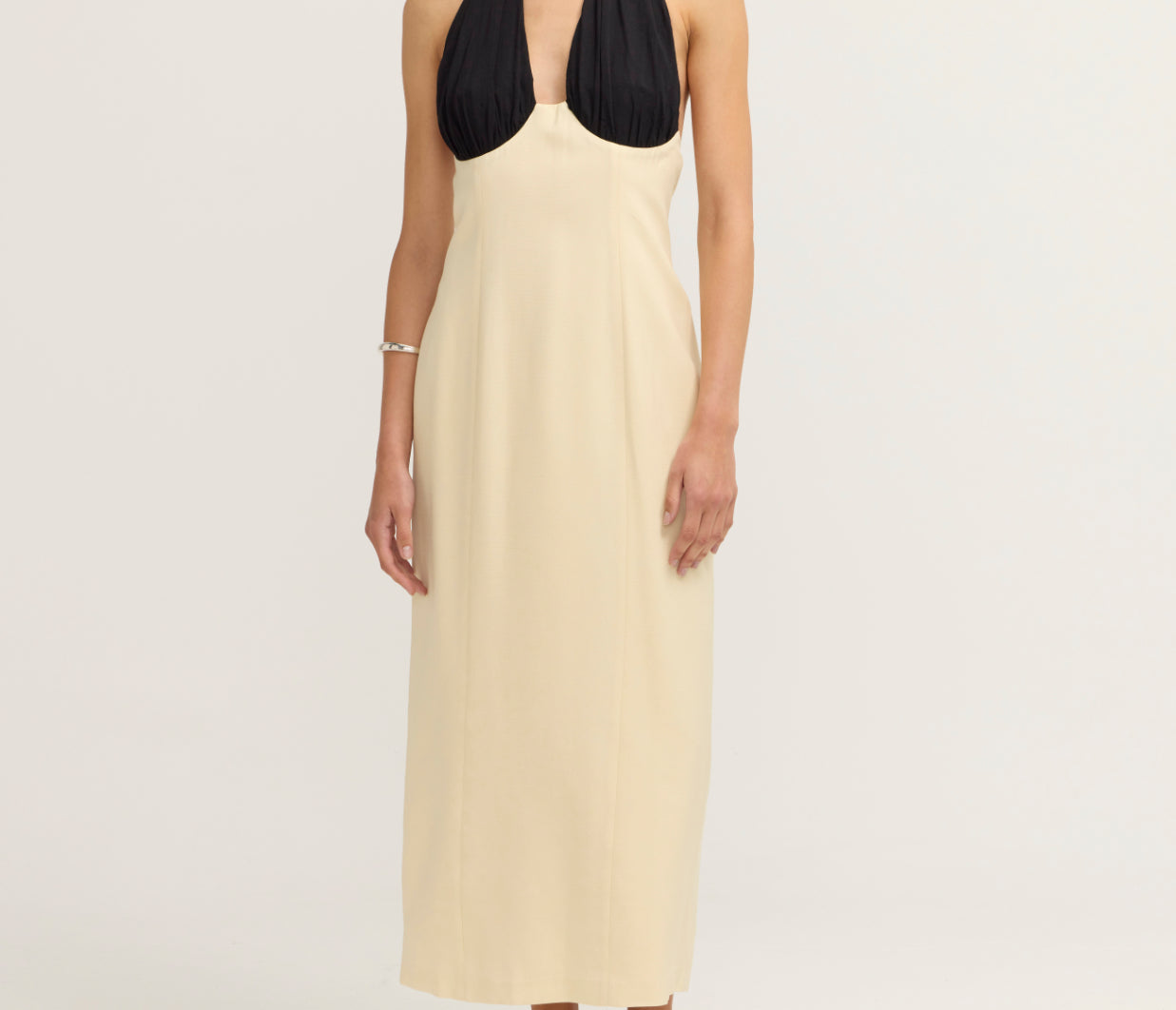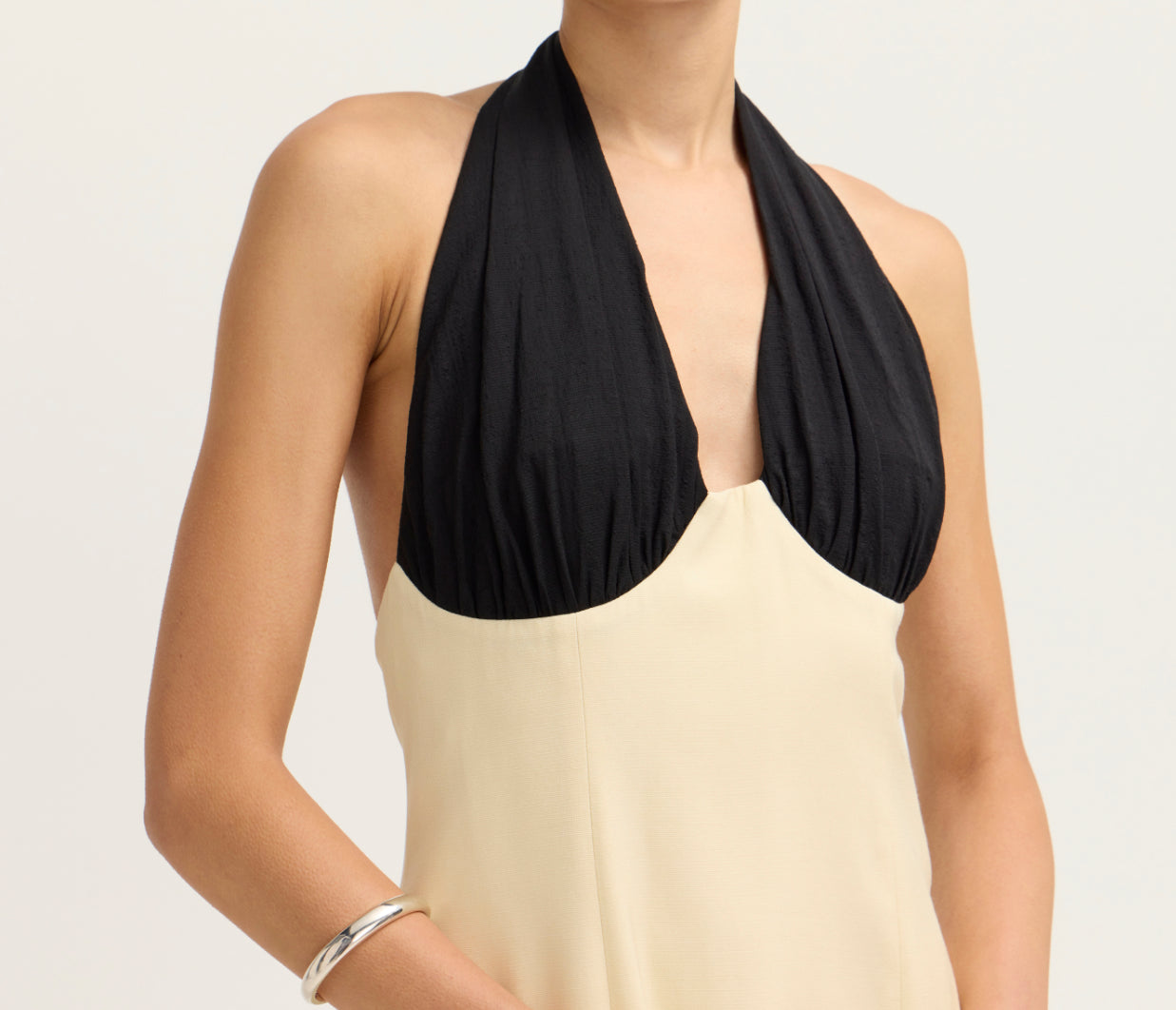 Introducing Third Form's Inverse Midi Dress in Cream is a stunning halter-neck design crafted for a close, sculpted fit. Showcasing bold colour-block contrasts and a gathered bra detail, this midi is elevated with contouring panel lines that beautifully enhance the silhouette. A sophisticated choice for a statement look.