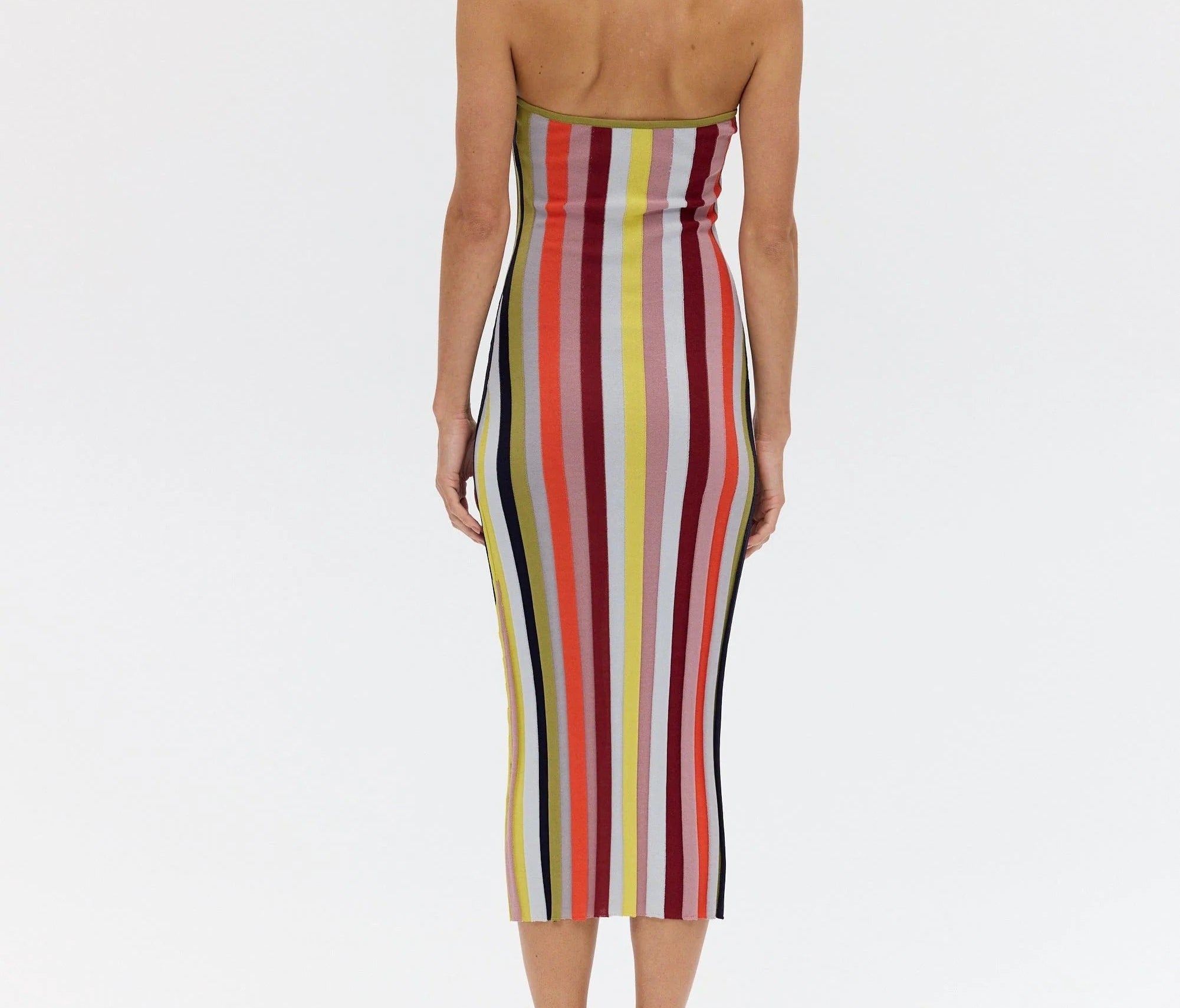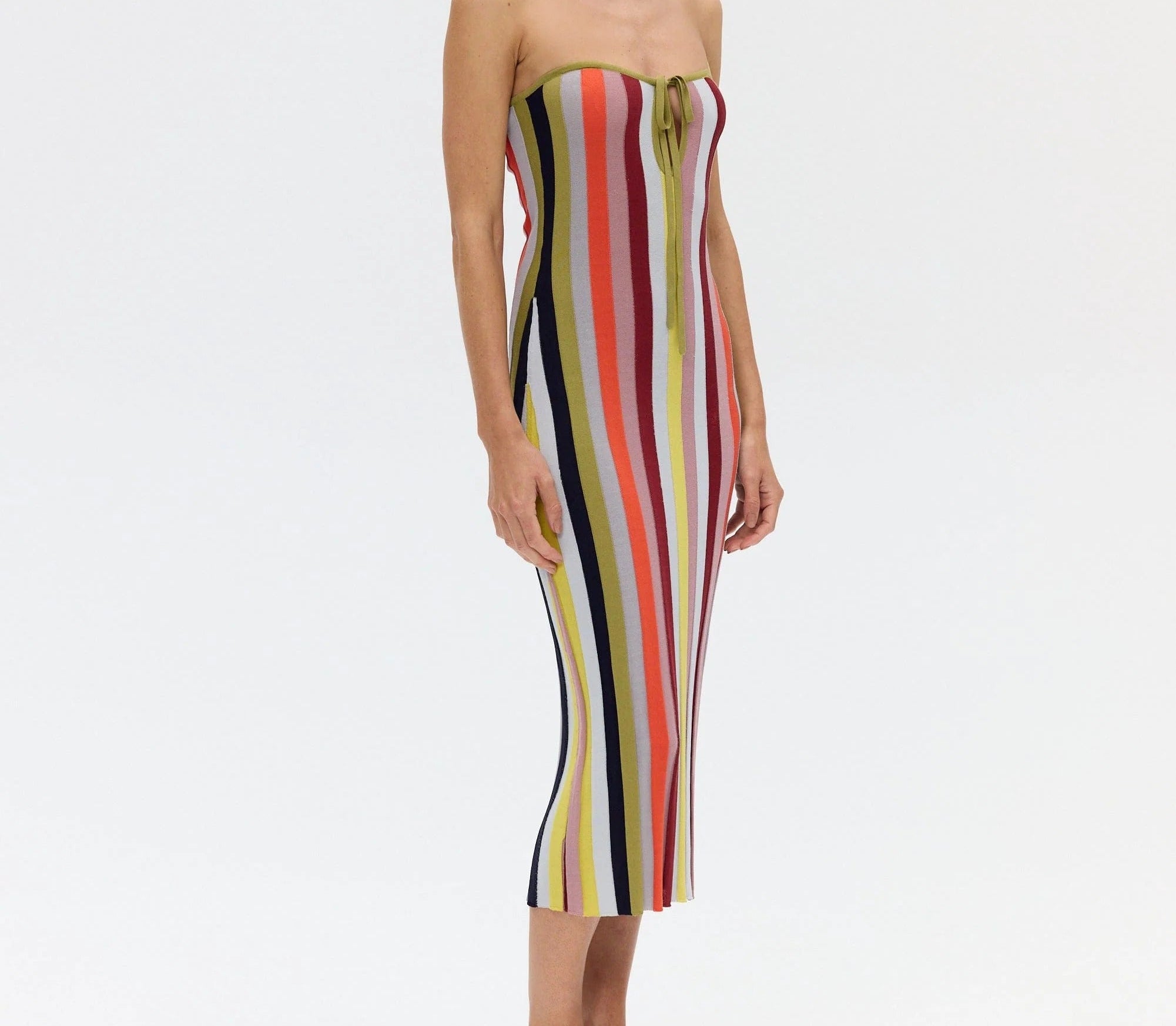 Rhythm Knit Strapless Midi Dress in Mirage Stripe