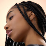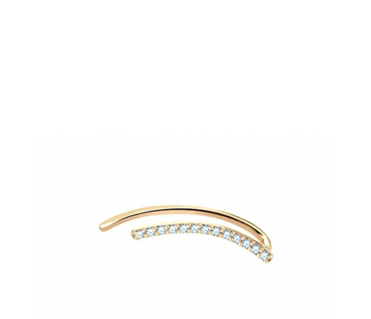 Introducing Tilla's Amber Climber Earring, an ear climber (ear crawler) earring. Designed to follow the natural curve of the ear, it features a slender, elongated arc silhouette with a dual-line construction one smooth, polished gold bar and one gently curved line set with closely spaced white crystals. The asymmetric, sweeping shape creates the illusion of multiple piercings while remaining lightweight and refined.