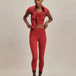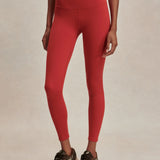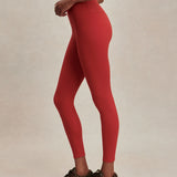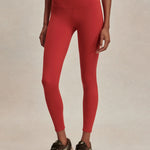 Introducing Varley's Freesoft High Rise Legging 28' in Lava Falls, a high-rise tight legging silhouette in a red lava fall hue. Designed in buttery soft with light compression and minimal seams in Varley's signature FreeSoft™, featuring a rolled waistband and tapered inseam panel for optimal comfort. Perfect for everyday active days or light workouts, yoga, Pilates, or off-duty days.