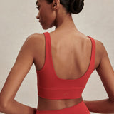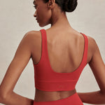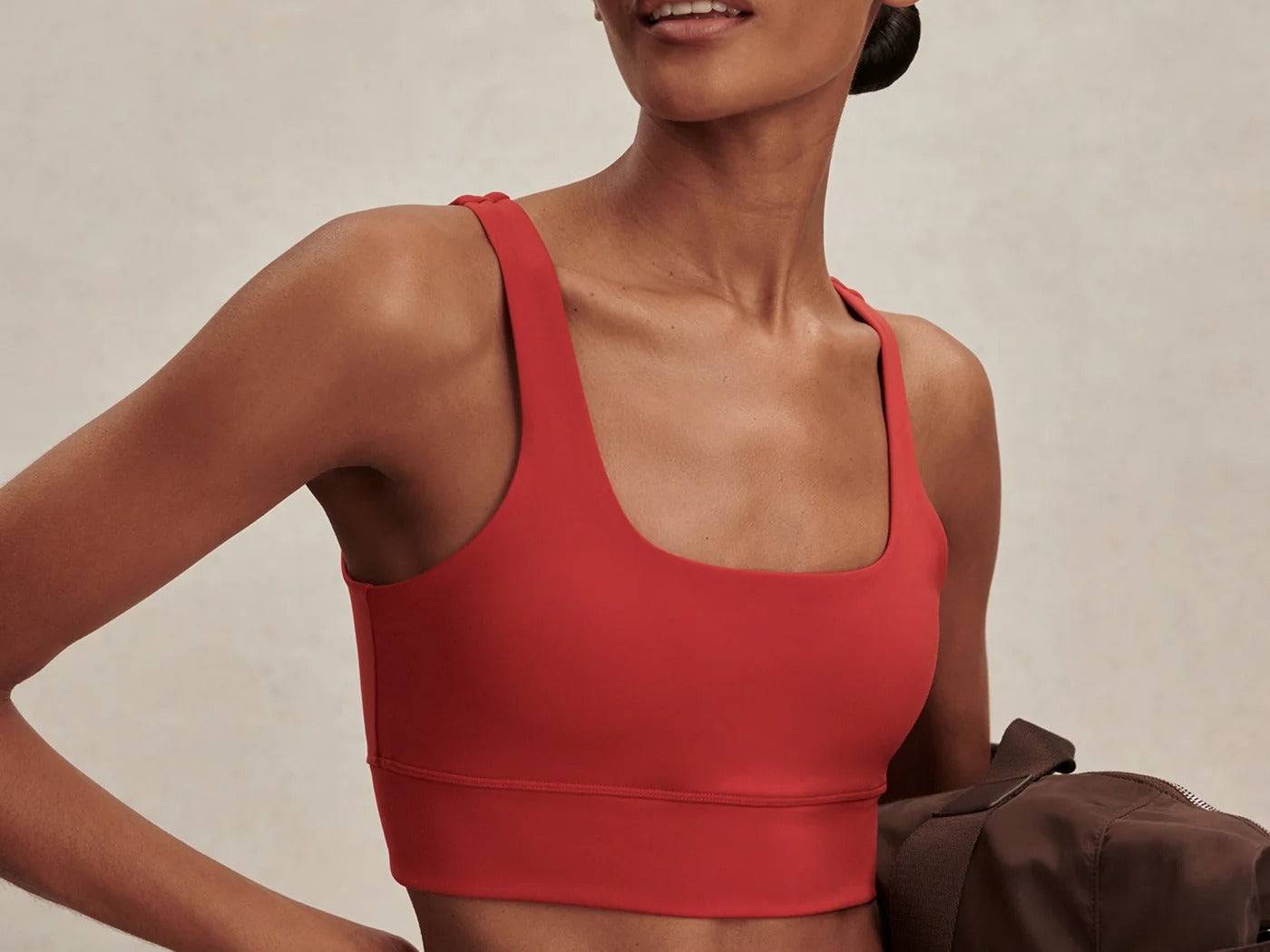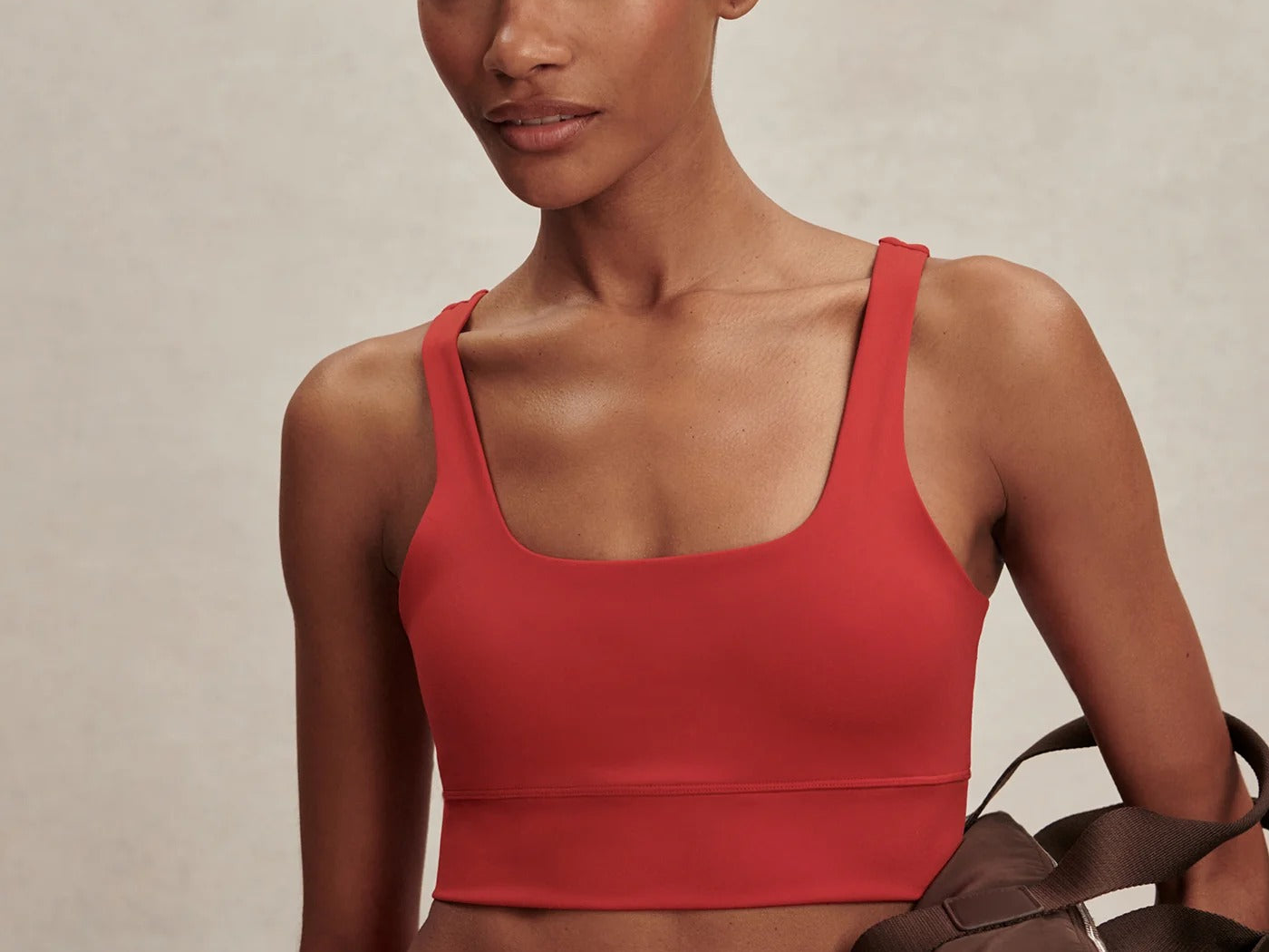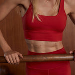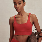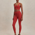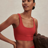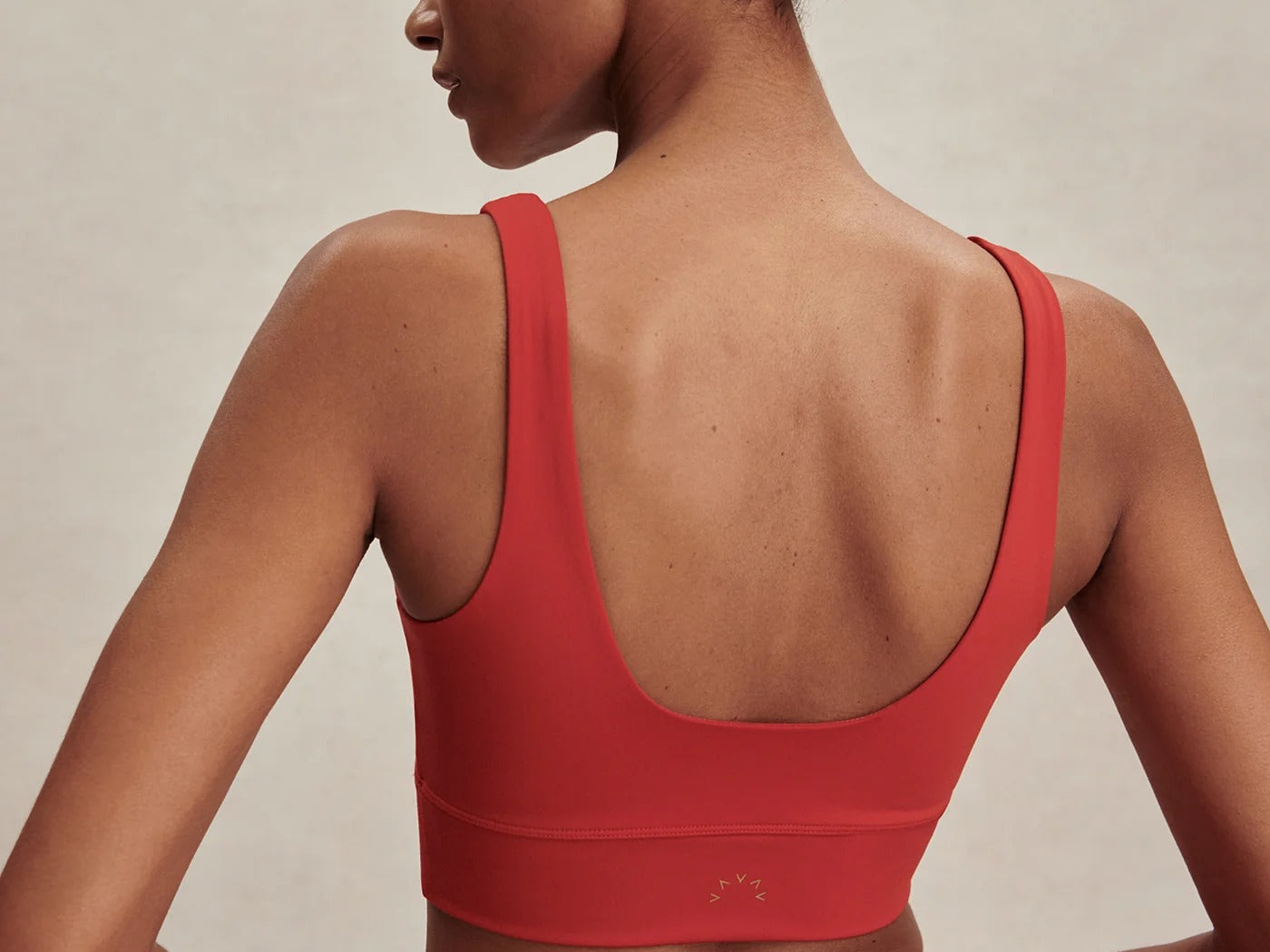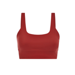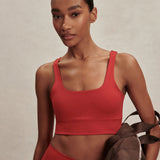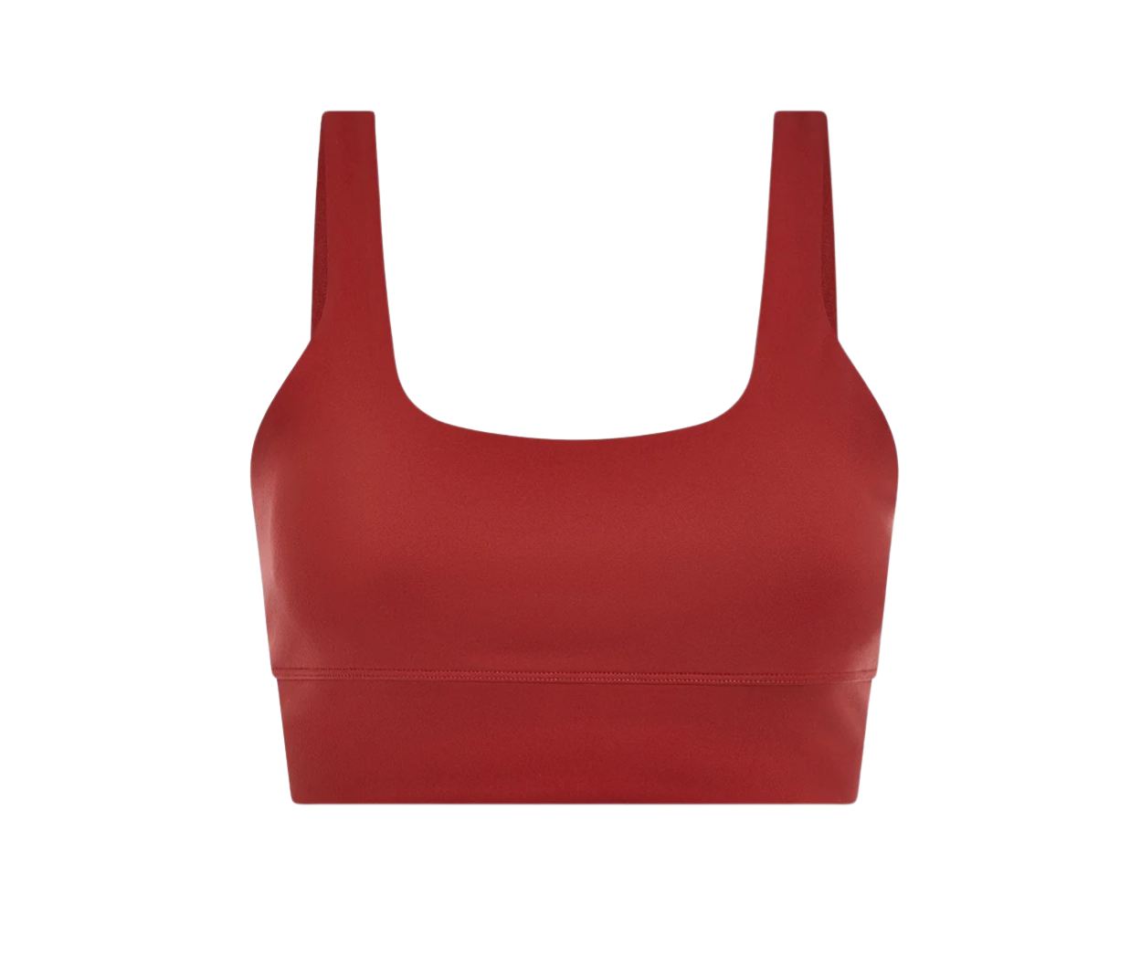 Introducing Varley's Freesoft Cori Bra in Lava Falls, an activewear bra silhouette in the color red lava. Combining comfort and performance, the Cori Bra features four-way stretch for full freedom of movement and moisture-wicking properties to keep you cool and dry all day. Perfect for everyday activities with light impact.