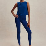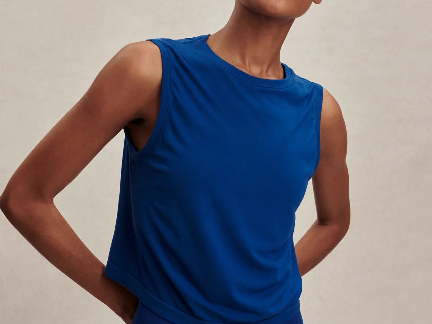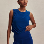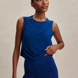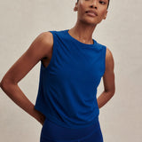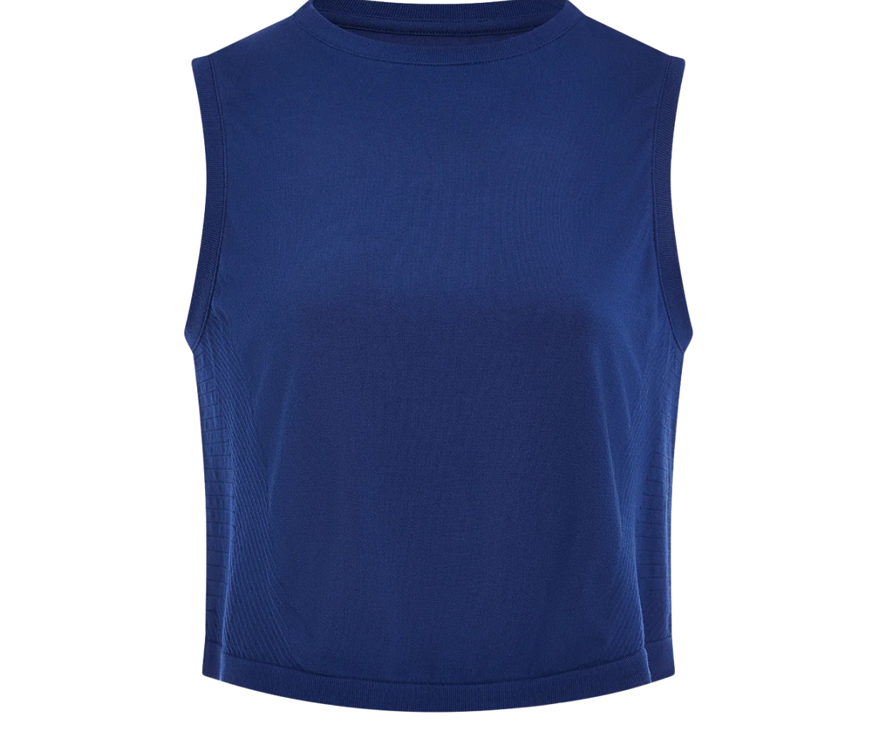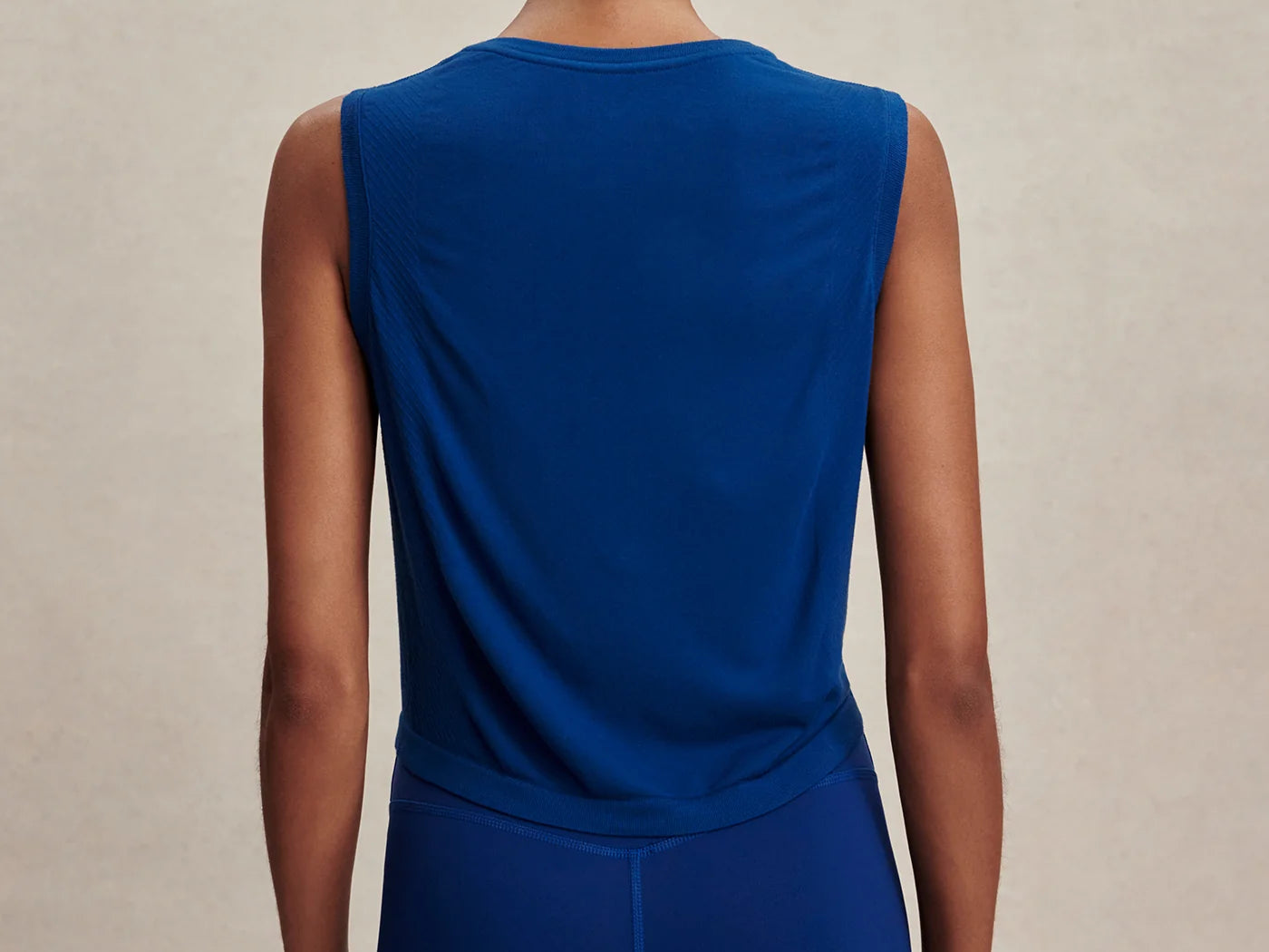 Introducing Varley's Nate Seamless Cropped Tank in Sodalite Blue, a lightweight activewear tank top in the color sodalite blue. Crafted from the Modal Seamless fabric, the Nate offers a super soft, natural feel and ultimate comfort, made for everyday movement. Cut to a long crop, boxy fit, it's perfect to throw over an active bra. Finished with subtle texturing and stitching details.