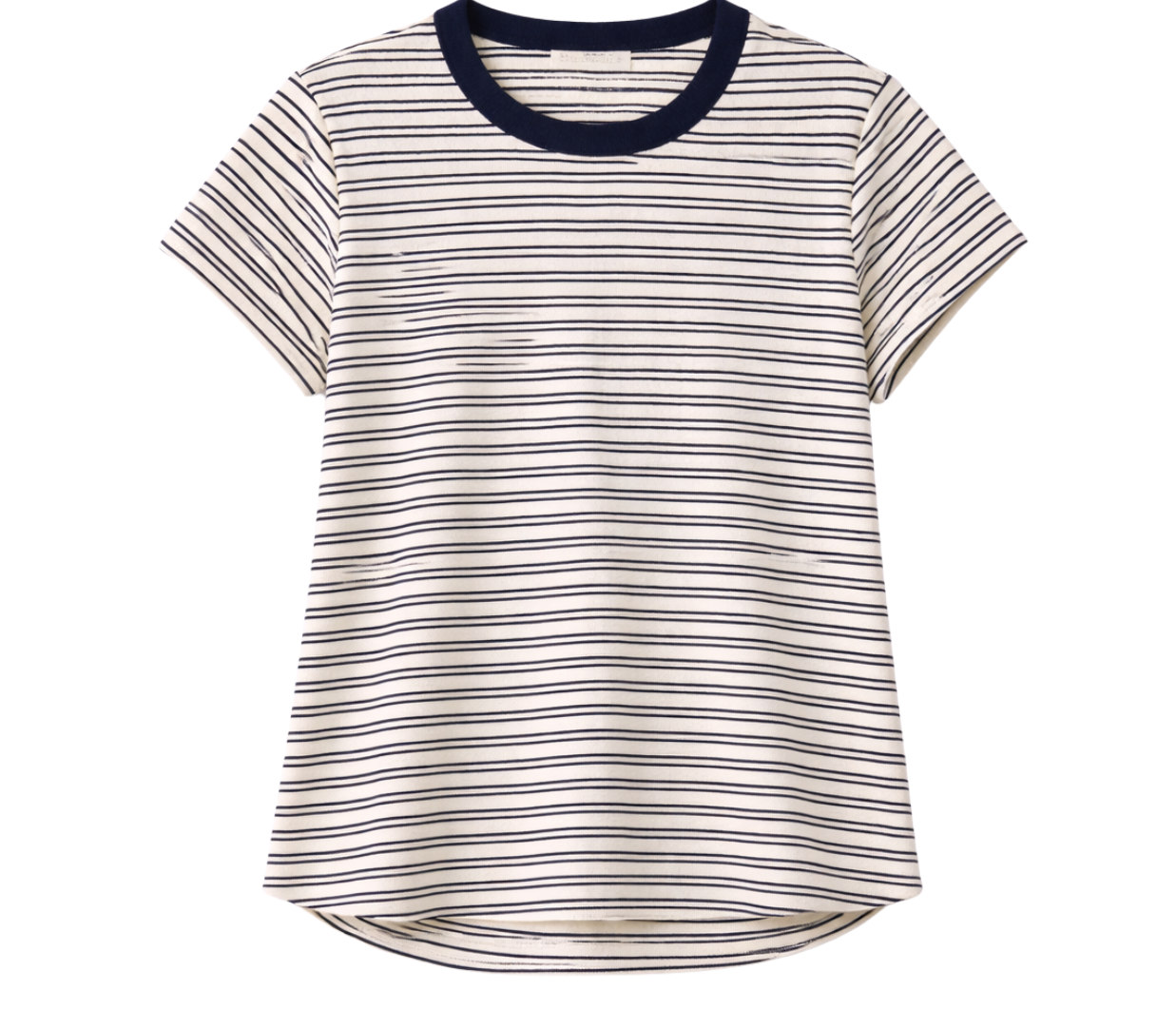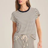 A fresh take on the everyday tee, this cropped silhouette is finished with a contrast crew neckline for a subtle statement. Crafted from yarn-dyed stripe jersey, it features short sleeves and a comfortable fit that’s easy to style. A casual essential with just the right amount of personality.