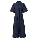 Denim Short Sleeve Shirt Dress in Deep Indigo