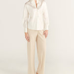 Introducing our best-selling High Waisted Bias Pant in Shell, now reimagined in sleek crepe for a modern, sophisticated look. These pants feature a hidden elastic waistband, offering seamless comfort without sacrificing style. The bias cut ensures a flattering fit that drapes effortlessly, making these pants a versatile staple for both work and leisure. Perfect for elevating any wardrobe, they blend elegance with understated ease.