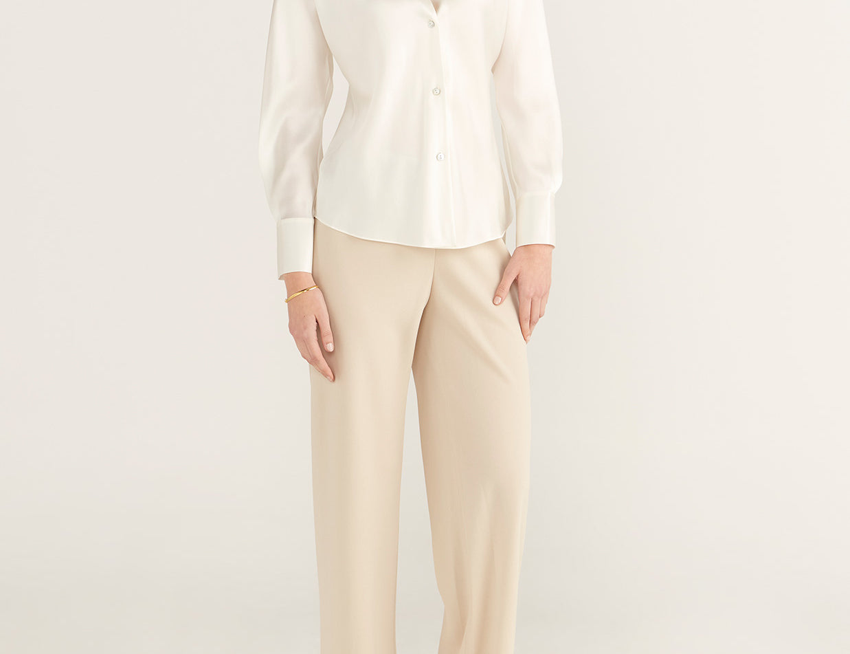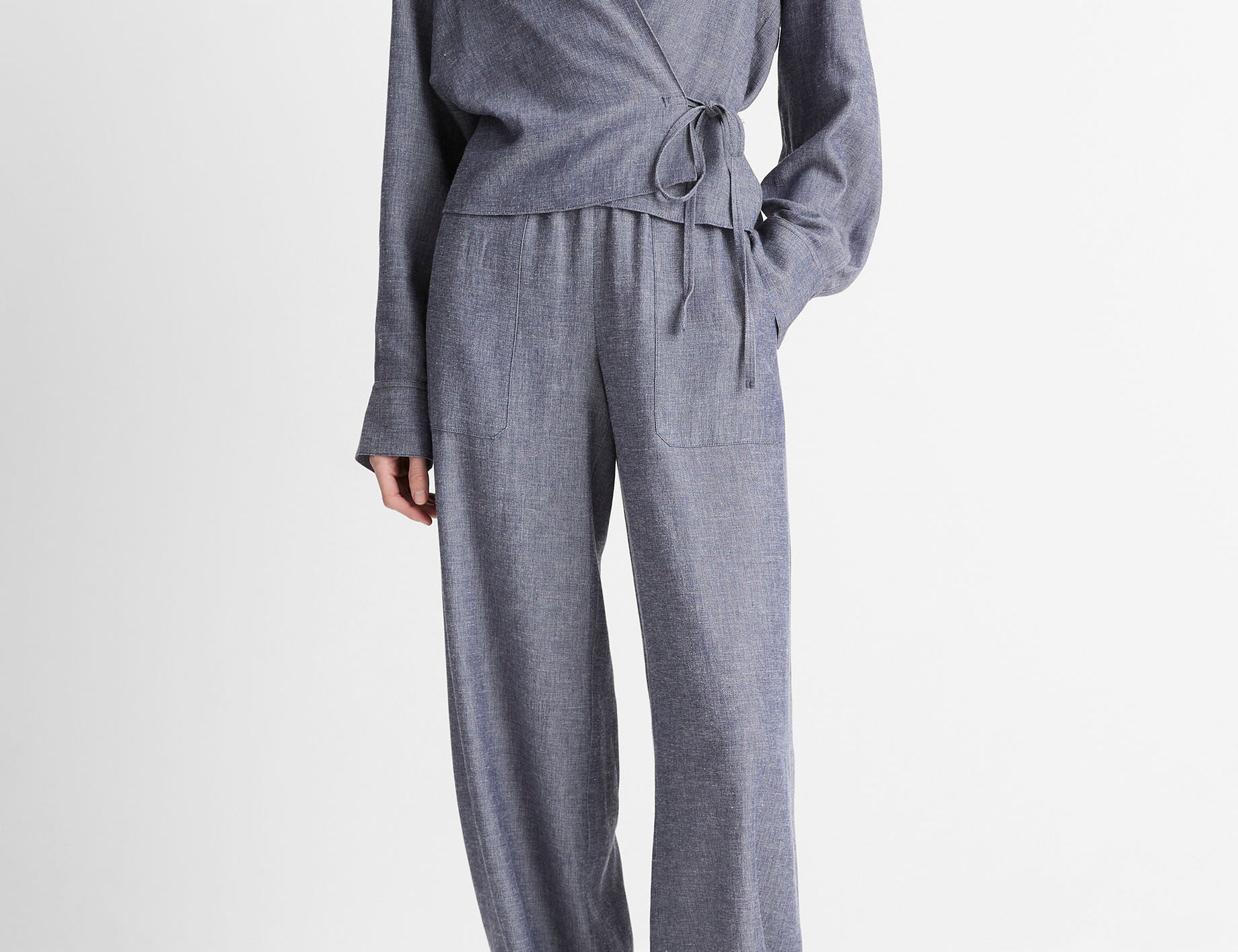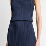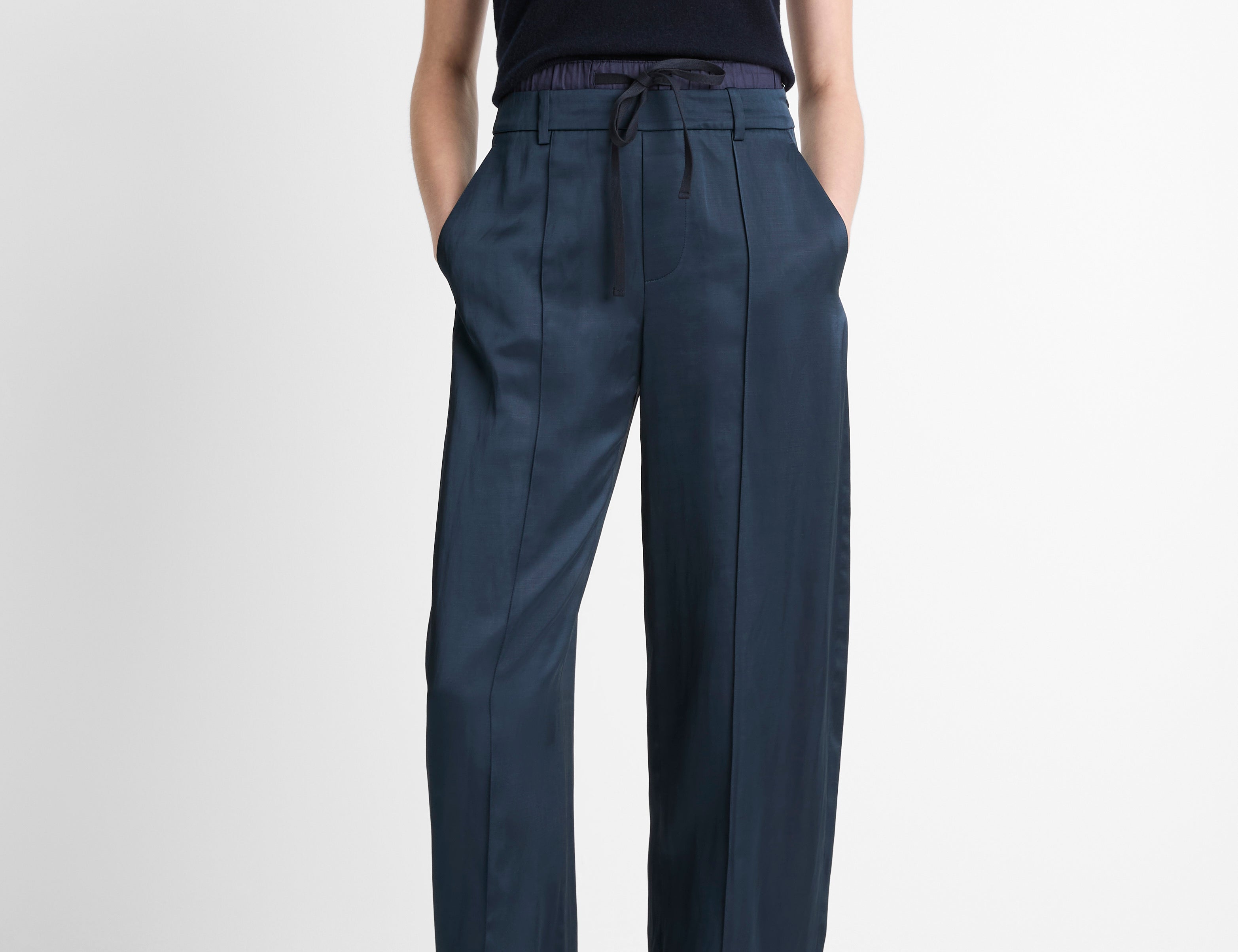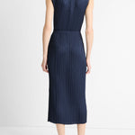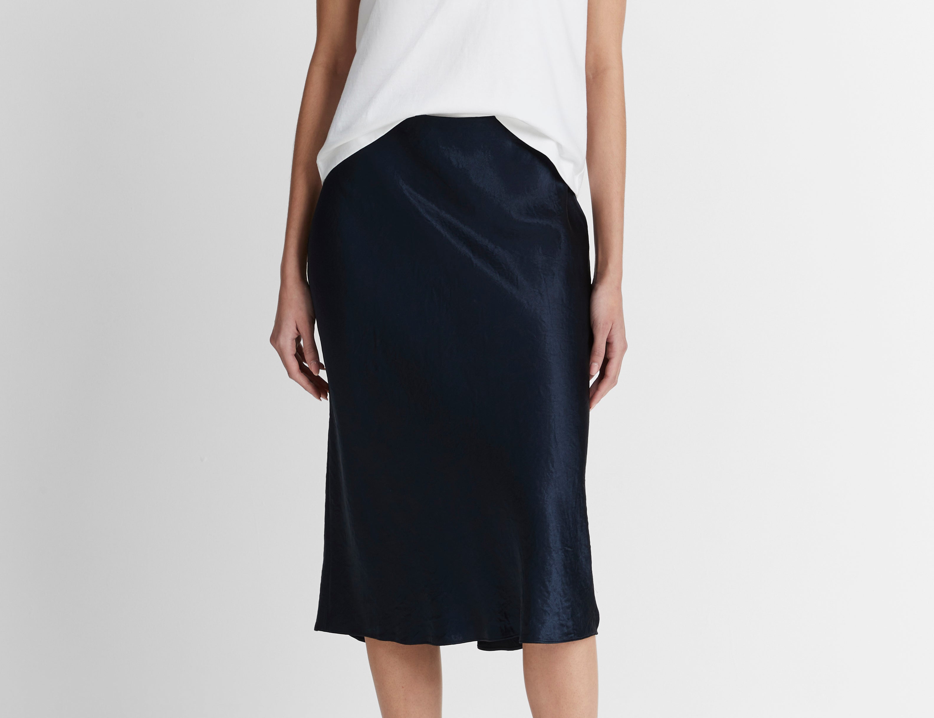 Introducing the Pleated Straight Pull-On Skirt in Coastal Blue, made from luxurious Japanese satin, the skirt features variegated pleats that create a captivating, dimensional effect. Designed with a hidden elastic waist, it offers a smooth, easy fit that slips on with ease.
