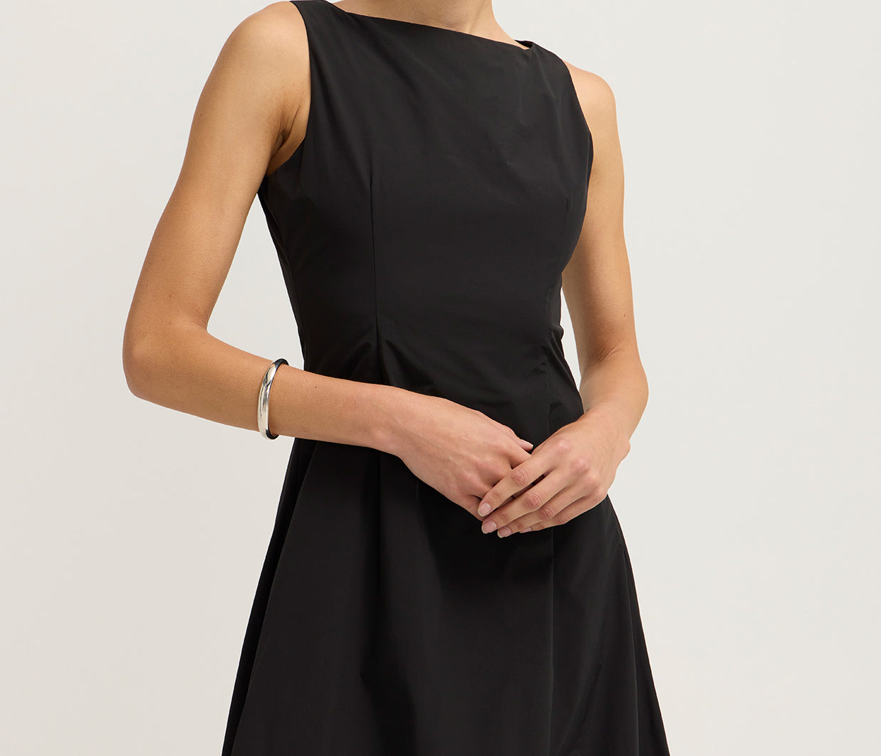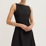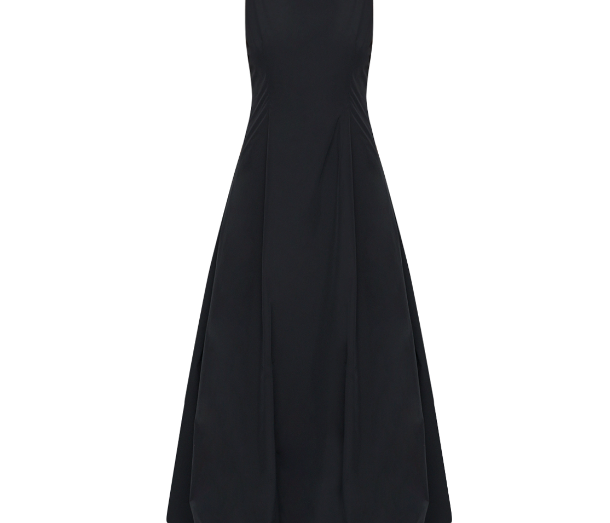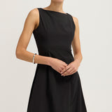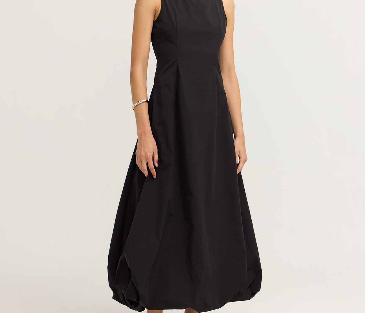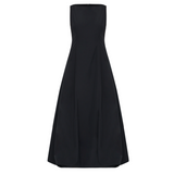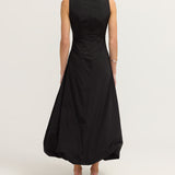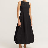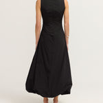 Introducing the Bobbie Maxi Dress in Black is a chic sleeveless design featuring a fitted bodice that flows into a voluminous bubble skirt. The sophisticated boat neckline adds a refined touch, while the dress is fully lined for a smooth, comfortable fit. An invisible zip closure at the center back ensures a seamless finish. Ideal for formal events or evening occasions.