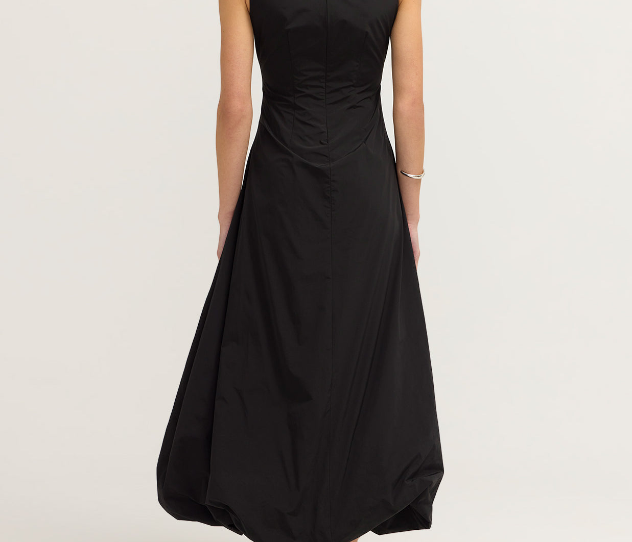 - Sleeveless fitted maxi dress with bubble skirt