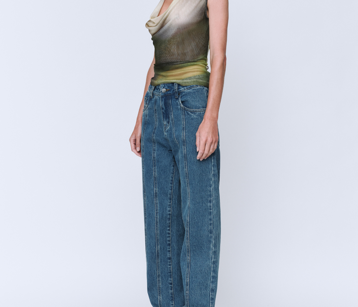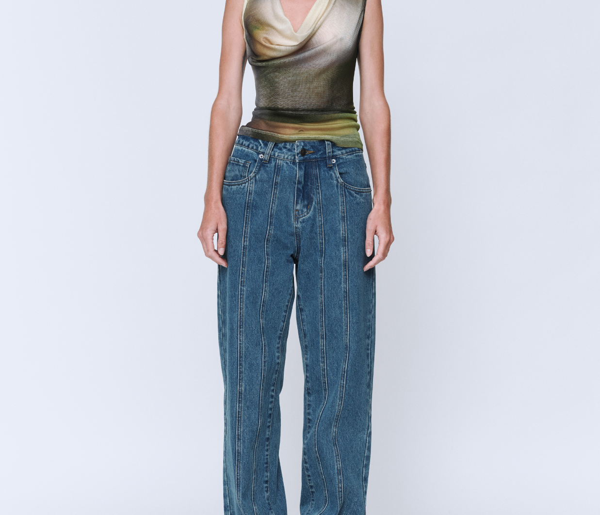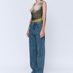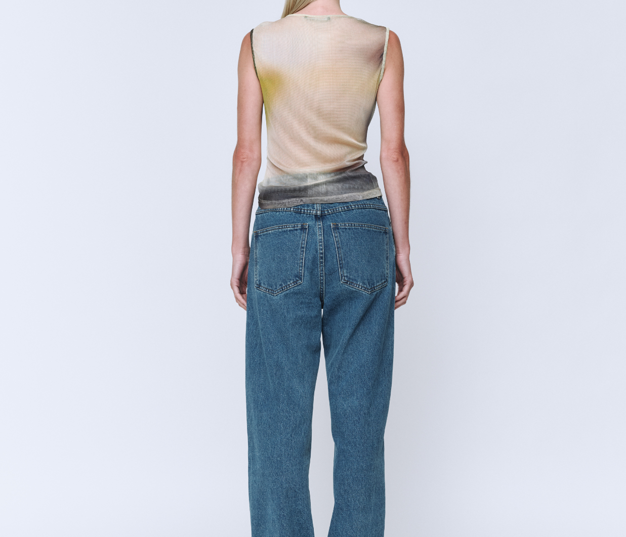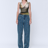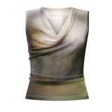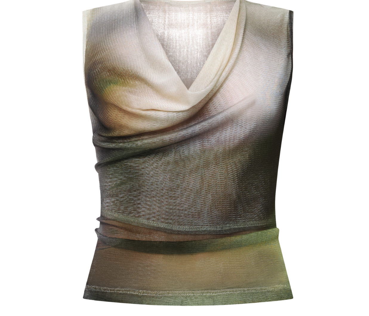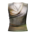 Introducing Wynn Hamlyn's Cowl Silk Mesh Tank in Acid Forest, a sheer mesh tank top silhouette with front cowl-neck draping. Designed with an abstract print of green, grey and cream hues, unlined for a light, layered look. A statement piece for an elevated look.