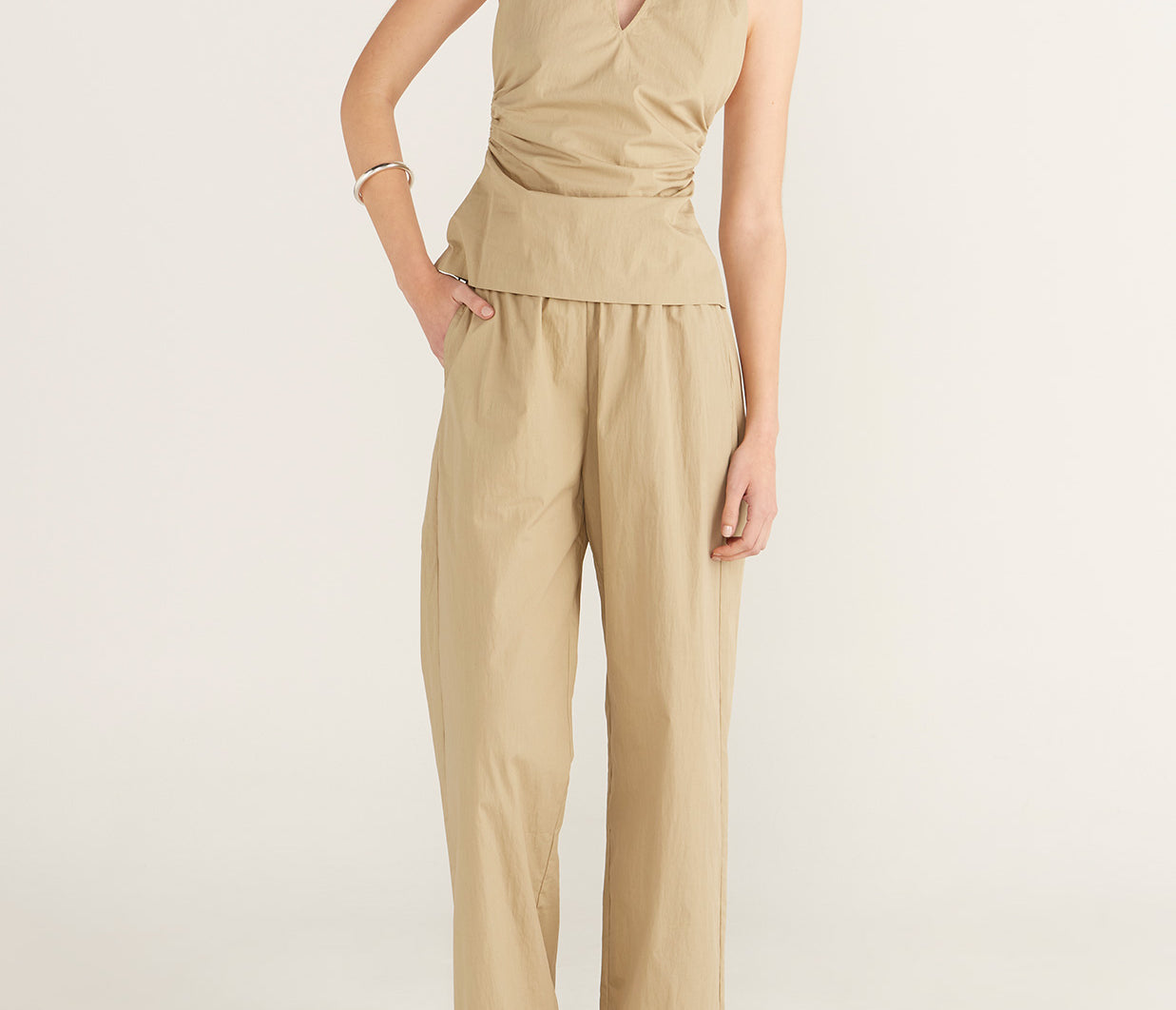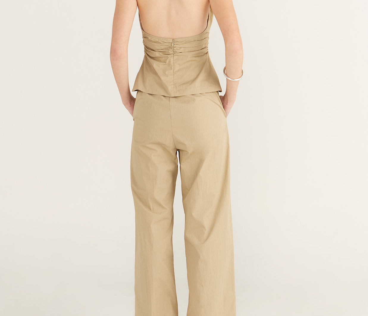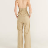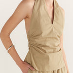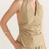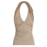 Introducing Wynn Hamlyn's Mia Top in Tan, featuring a fitted halter neck. The Mia Top features a low neckline, cropped length and slim fit bodice designed with tan fabrication.