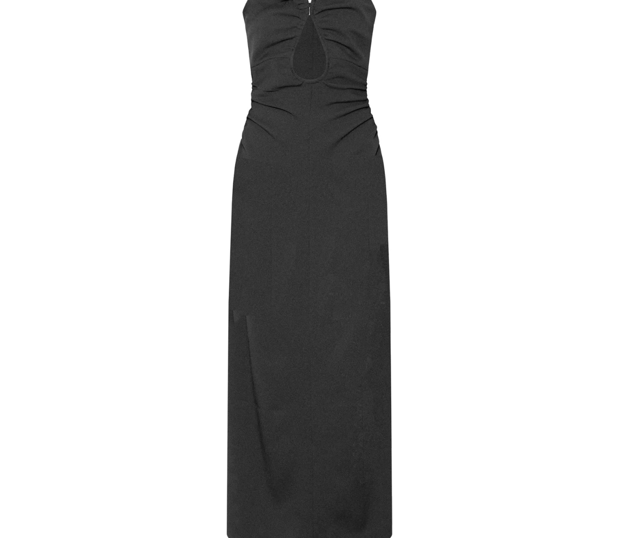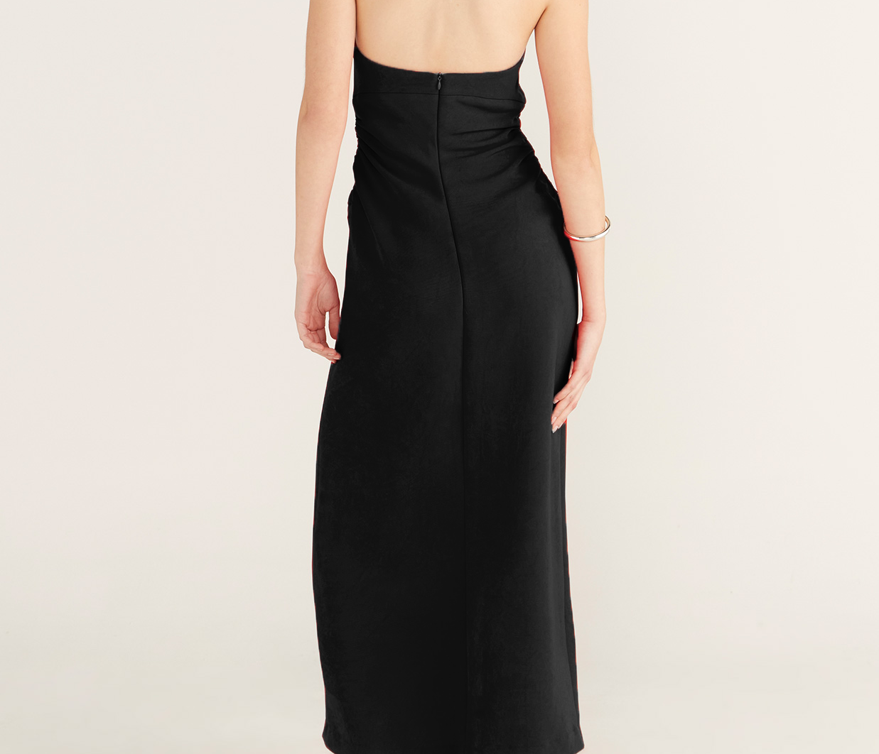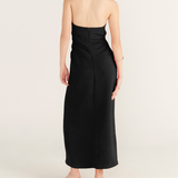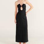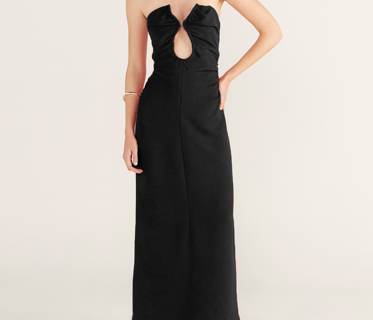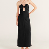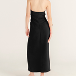 The Black Zoe Bodice dress is an A-line silhouette dress finishing at the ankle, Featuring a front keyhole feature, with adjustable wire and hook and eye closure. Complete the look with mules and a clutch.