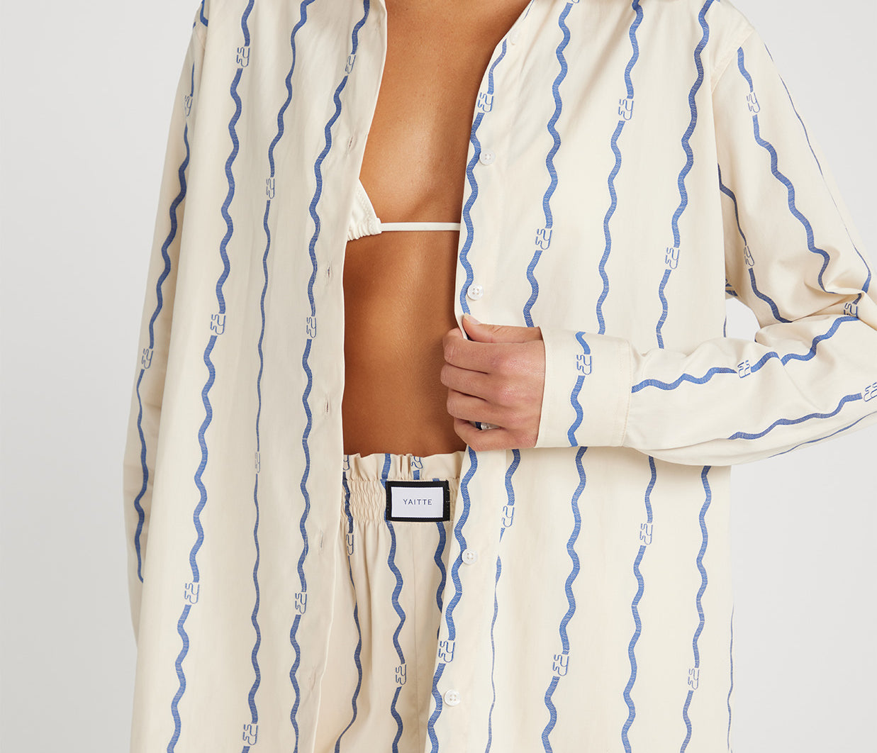 Introducing Yaitte's Buoy Shirt in Bespoke Wave Coupe is a classic point collar t-shirt. The Buoy Shirt is crafted from 100% cotton, it features a softness next-to-skin and lightweight fabrication. This classic style is designed to sit as an oversized boyfriend fit shirt.