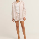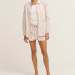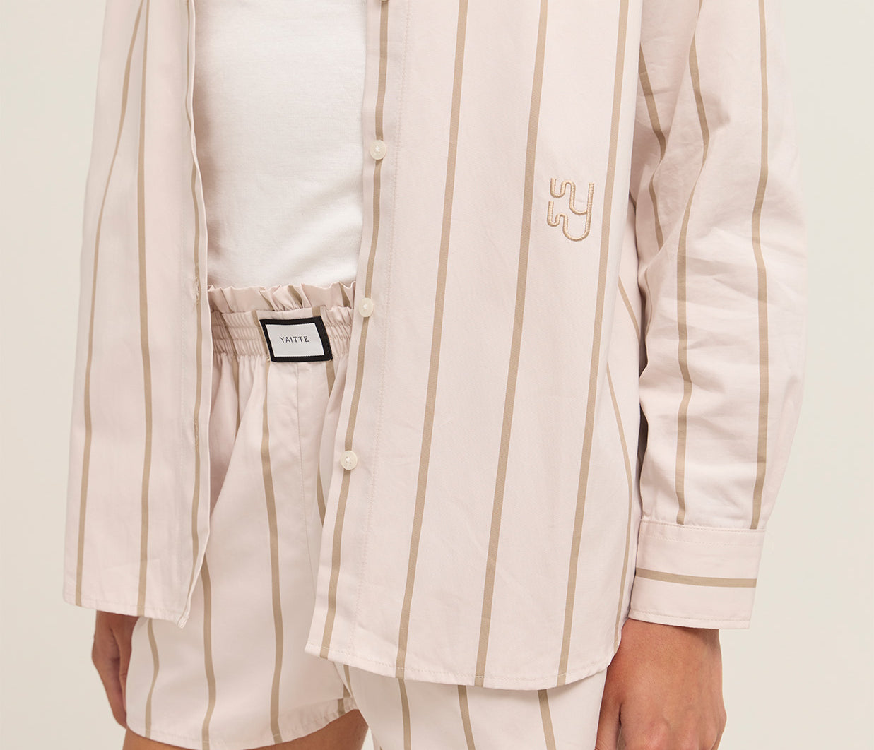 A Yaitte classic. The Buoy Shirt in Tofu and Sand crafted from 100% TACTEL which is an adapted form of nylon, its benefits include a softness next-to-skin and lightweight fabrication. This classic style is designed to sit as an oversized boyfriend fit shirt. Style yours with a linen short or classic denim for the complete look.