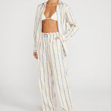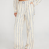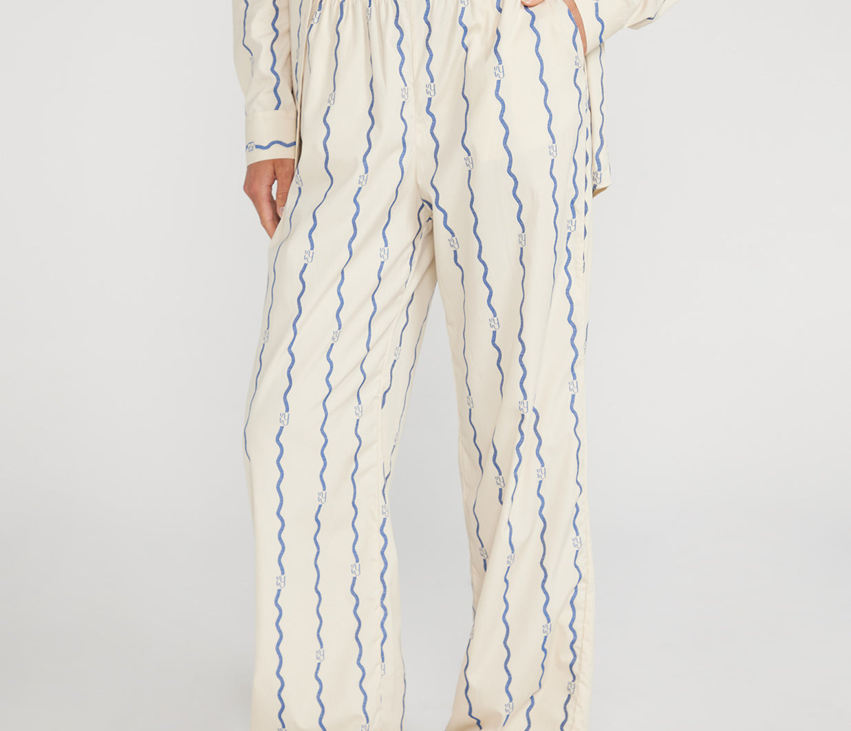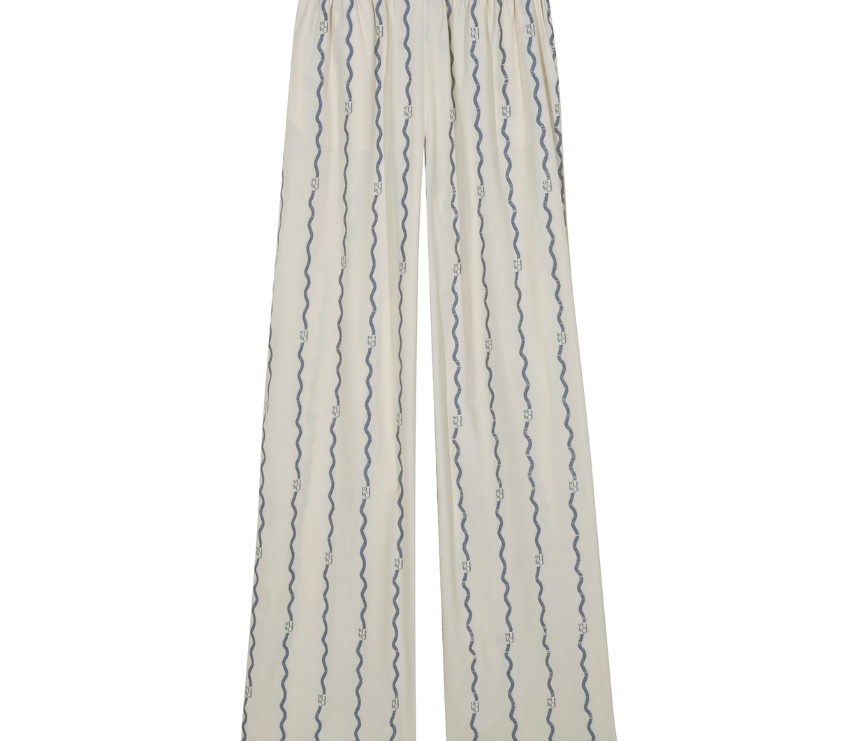 Introducing Yaitte's Janeiro Trouser in Bespoke Wave Coupe, a relaxed straight-leg pant silhoutte. This palazzo-style trouser is crafted from 100% Italian cotton poplin adorned with a unique bespoke wave coupe print. Designed for versatility, the Janeiro Trouser is perfect for urban living and summer getaways alike, featuring an internally elasticated waist that seamlessly combines comfort with classic style.